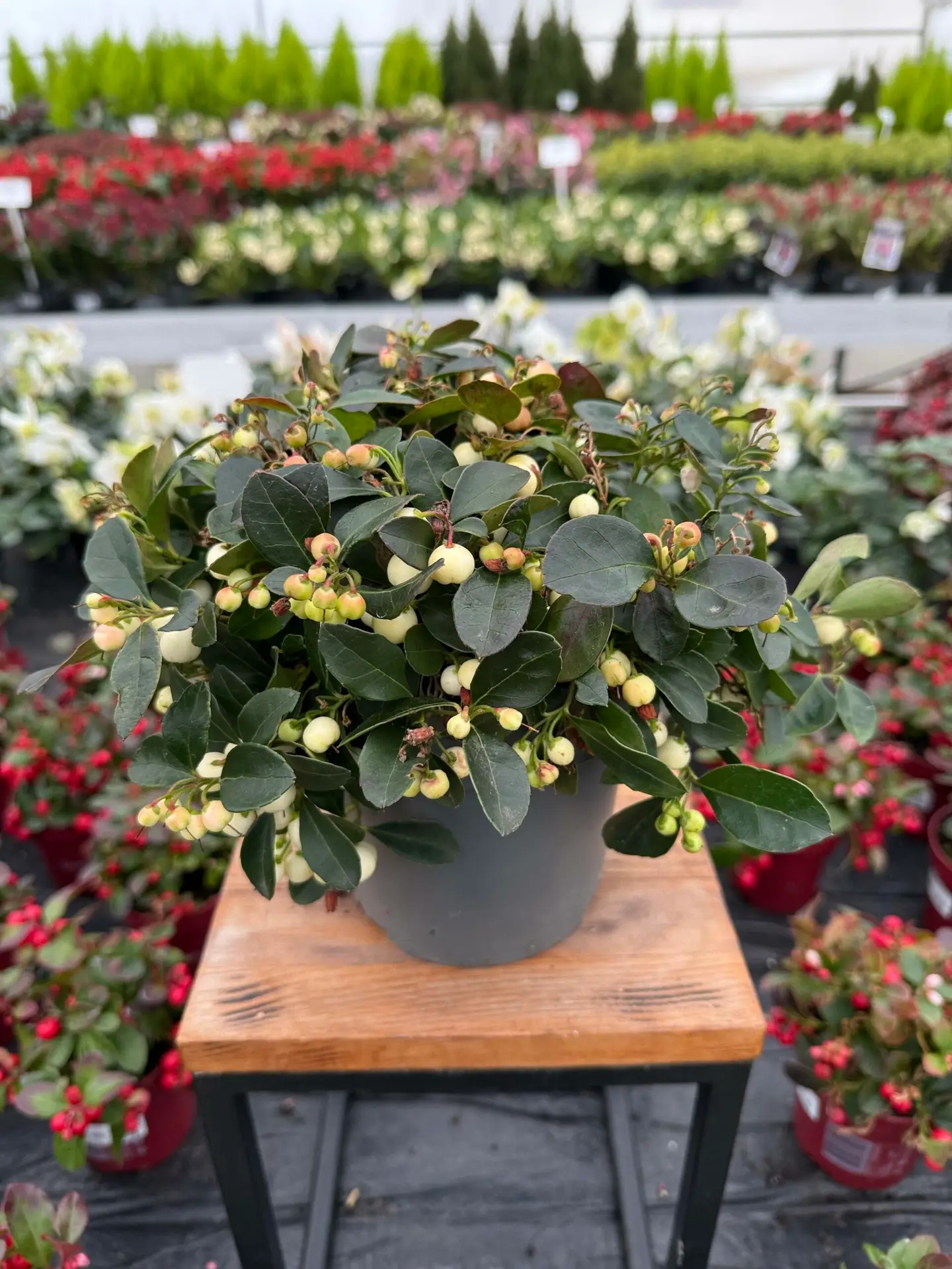 Golteria Big Berry White (Gaultheria procumbens) to wyjątkowa, zimozielona roślina ozdobna, ceniona za swoje dekoracyjne, białe owoce i intensywnie zielone liście. To idealny wybór do jesienno-zimowych kompozycji, donic na taras, balkon oraz do dekoracji świątecznych. Golteria tworzy zwarte, niskie kępy i zachowuje atrakcyjny wygląd przez cały rok, nawet podczas mrozów.