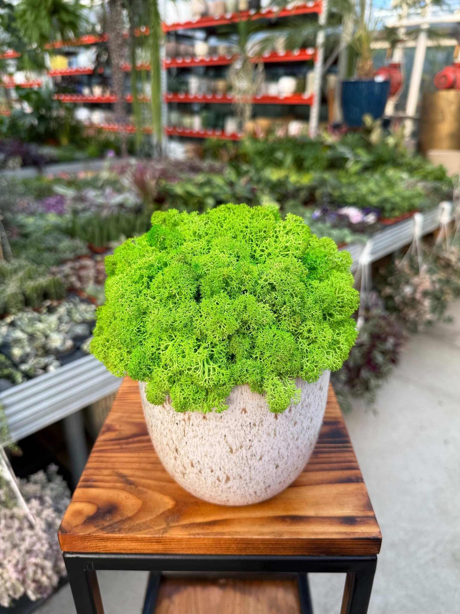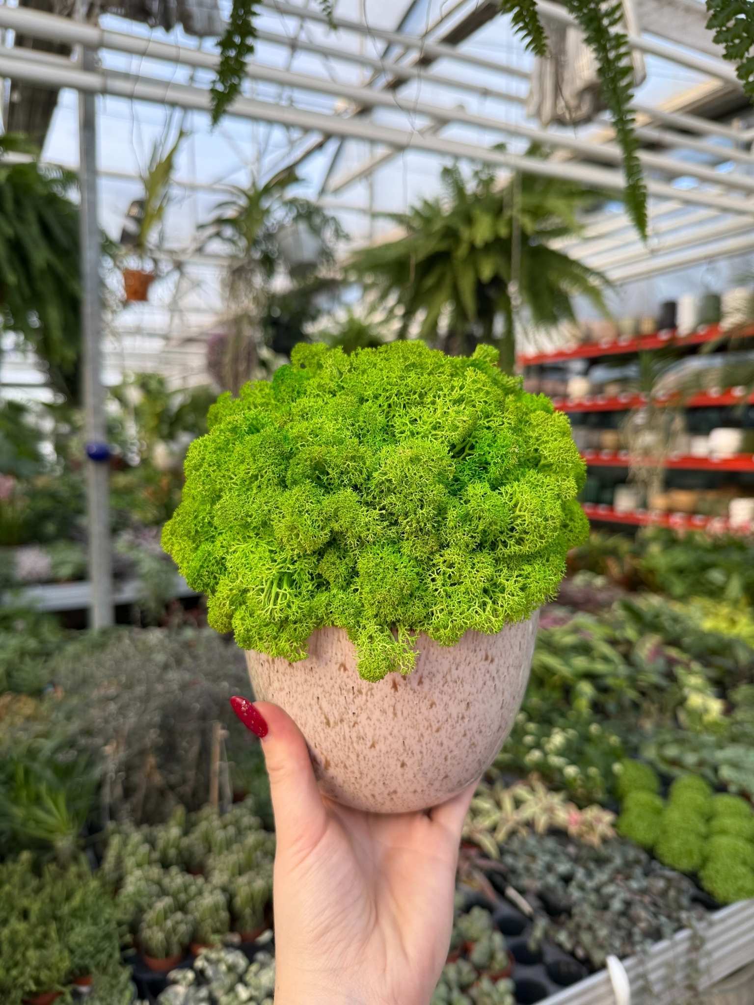 Naturalna kompozycja z mchu chrobotka stabilizowanego to elegancka i bezobsługowa dekoracja, która wprowadza do wnętrza świeżość oraz nowoczesny charakter. Intensywnie zielony mech został starannie uformowany w gęstą, miękką strukturę i umieszczony w minimalistycznej, ceramicznej donicy o jasnym wykończeniu, dzięki czemu doskonale pasuje do wnętrz w stylu nowoczesnym, skandynawskim i loftowym.