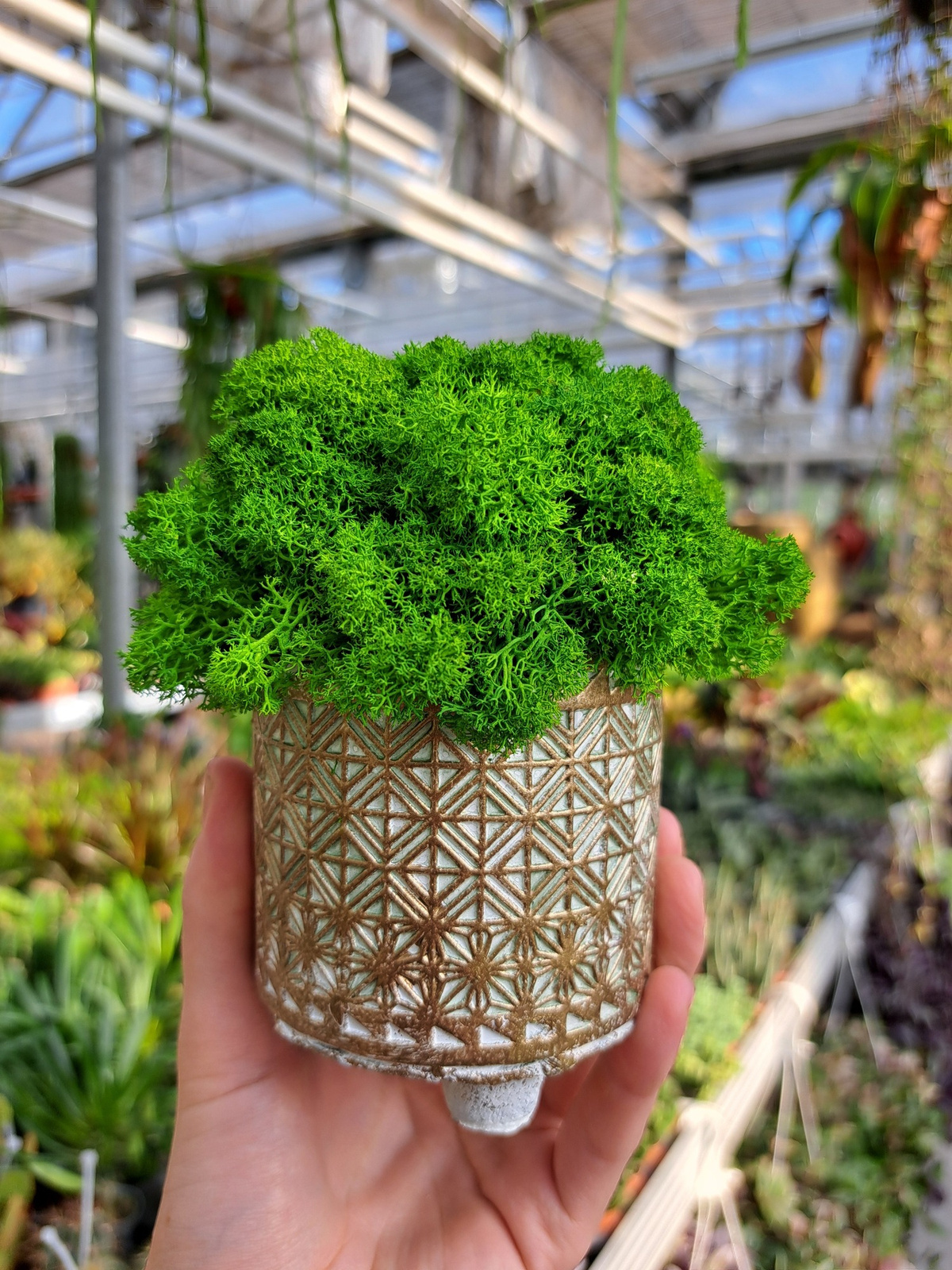 Chrobotek reniferowy, znany również jako mech islandzki, to naturalny materiał, który zdobywa coraz większą popularność w aranżacji wnętrz. Ten niepowtarzalny mech nie tylko zachwyca swoim wyglądem, ale także jest całkowicie bezobsługowy. Chrobotek jest antyalergiczny, nie wymaga podlewania ani specjalnego oświetlenia, co czyni go idealnym elementem dekoracyjnym w każdym pomieszczeniu.