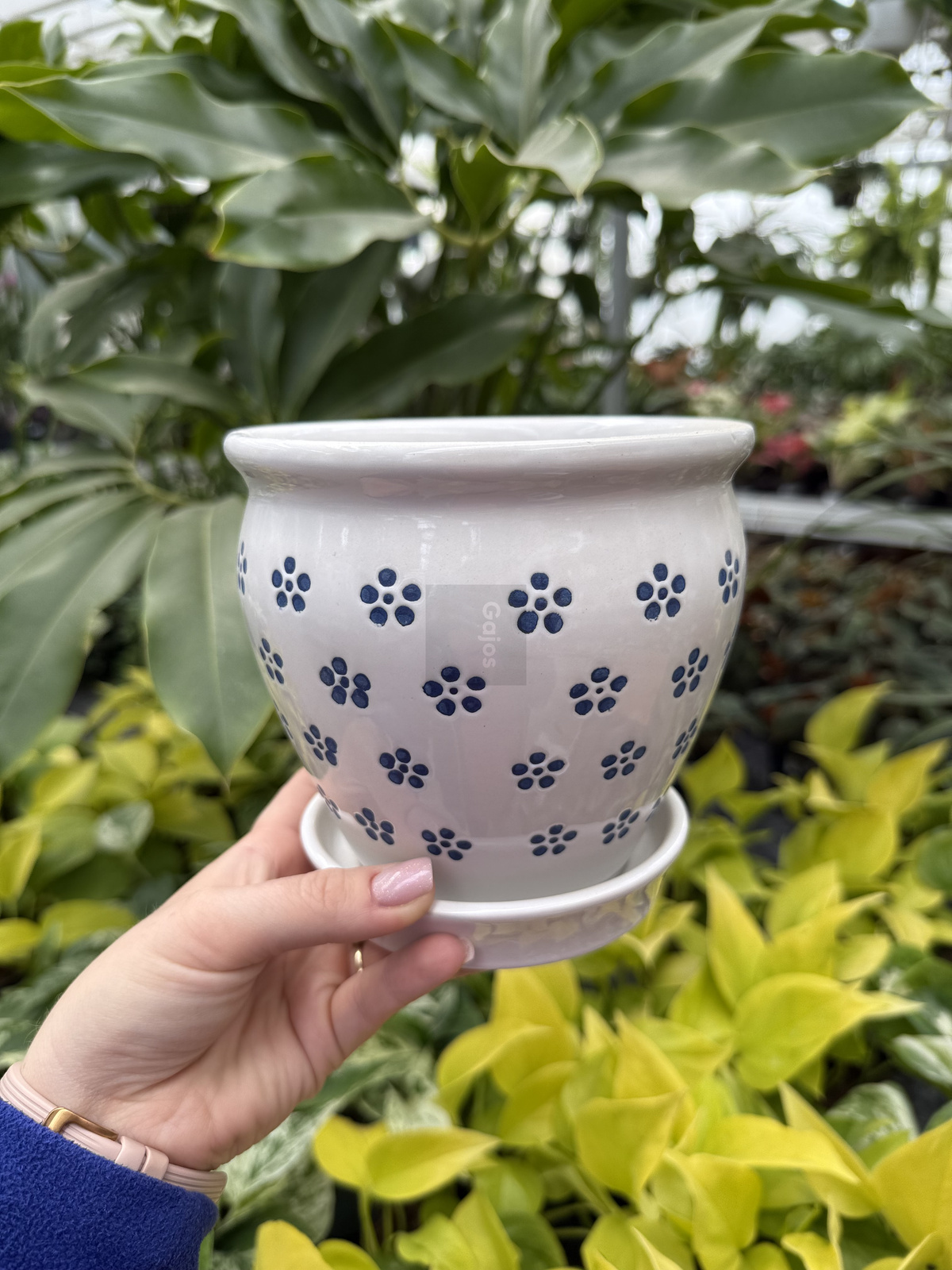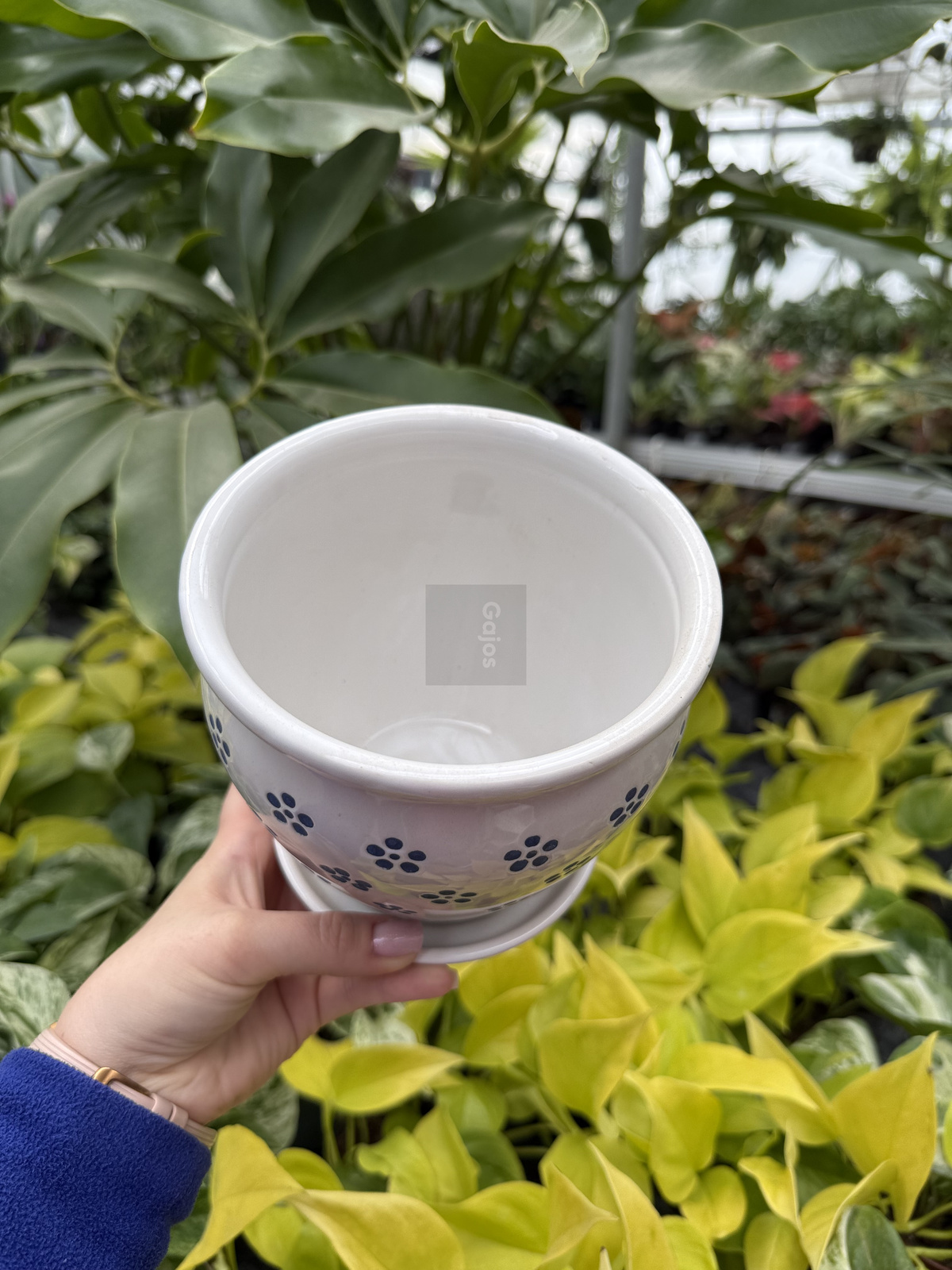 Dodaj uroku swoim roślinom doniczkowym dzięki uroczej donicy ceramicznej „Stokrotka”. Wykonana z wysokiej jakości ceramiki, zachwyca delikatnym, kwiatowym wzorem inspirowanym stokrotkami, który wnosi do wnętrza wiosenną świeżość i naturalne piękno.