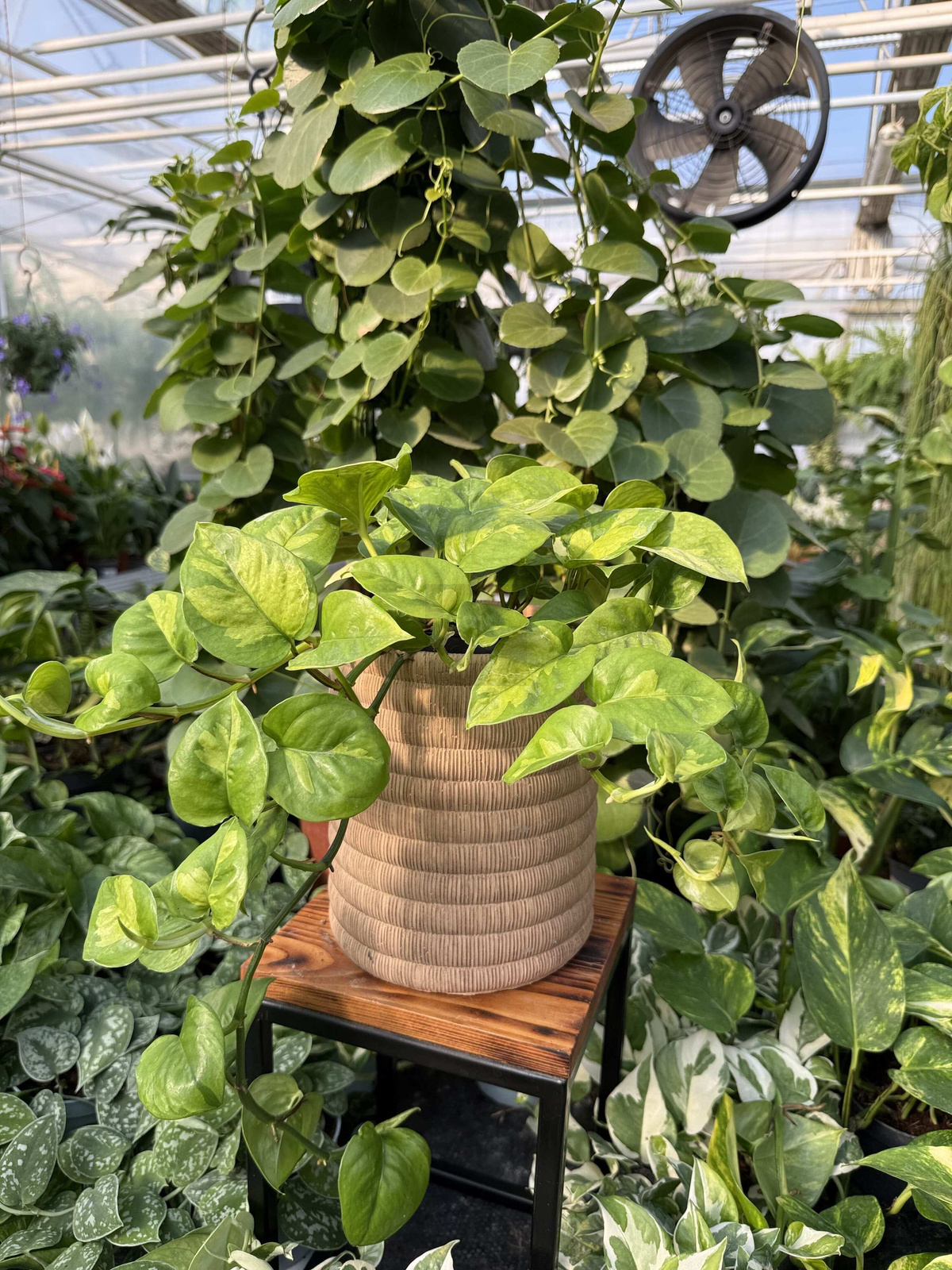 Donica ceramiczna Walec Boho Piaskowe to propozycja dla osób poszukujących eleganckiej, funkcjonalnej osłonki doniczkowej o nowoczesnym, geometrycznym wzorze, która pasuje do różnych roślin i wnętrz.