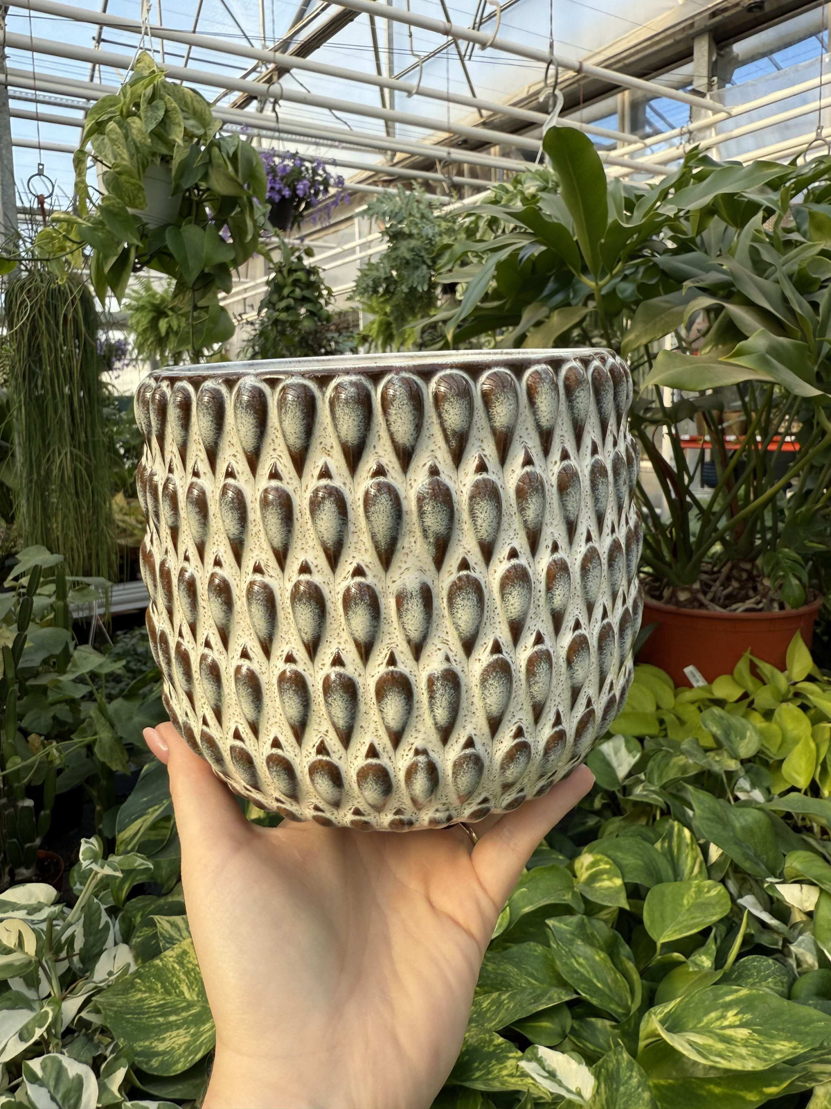 Wprowadź do swojego wnętrza odrobinę natury i artystycznego uroku z osłonką ceramiczną Boheme. To wyjątkowa dekoracja w stylu boho, łącząca ręczne zdobienia, ciepłe odcienie kremu i brązu oraz subtelną, organiczną fakturę. Każda sztuka to małe dzieło sztuki, które podkreśli charakter Twojej rośliny i wniesie do pomieszczenia przytulny klimat.