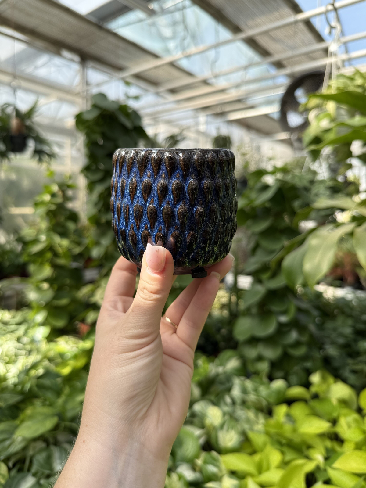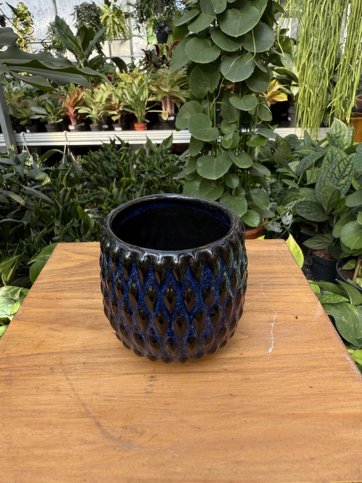 Osłonka ceramiczna Boheme to wyjątkowy element dekoracyjny, który doda wnętrzu charakteru i stylu. Wykonana z wysokiej jakości ceramiki, zachwyca niepowtarzalnym zdobieniem – tłoczone wzory przypominające orientalne motywy oraz unikalne połączenie kolorów w odcieniach granatu i głębokiej czerni.