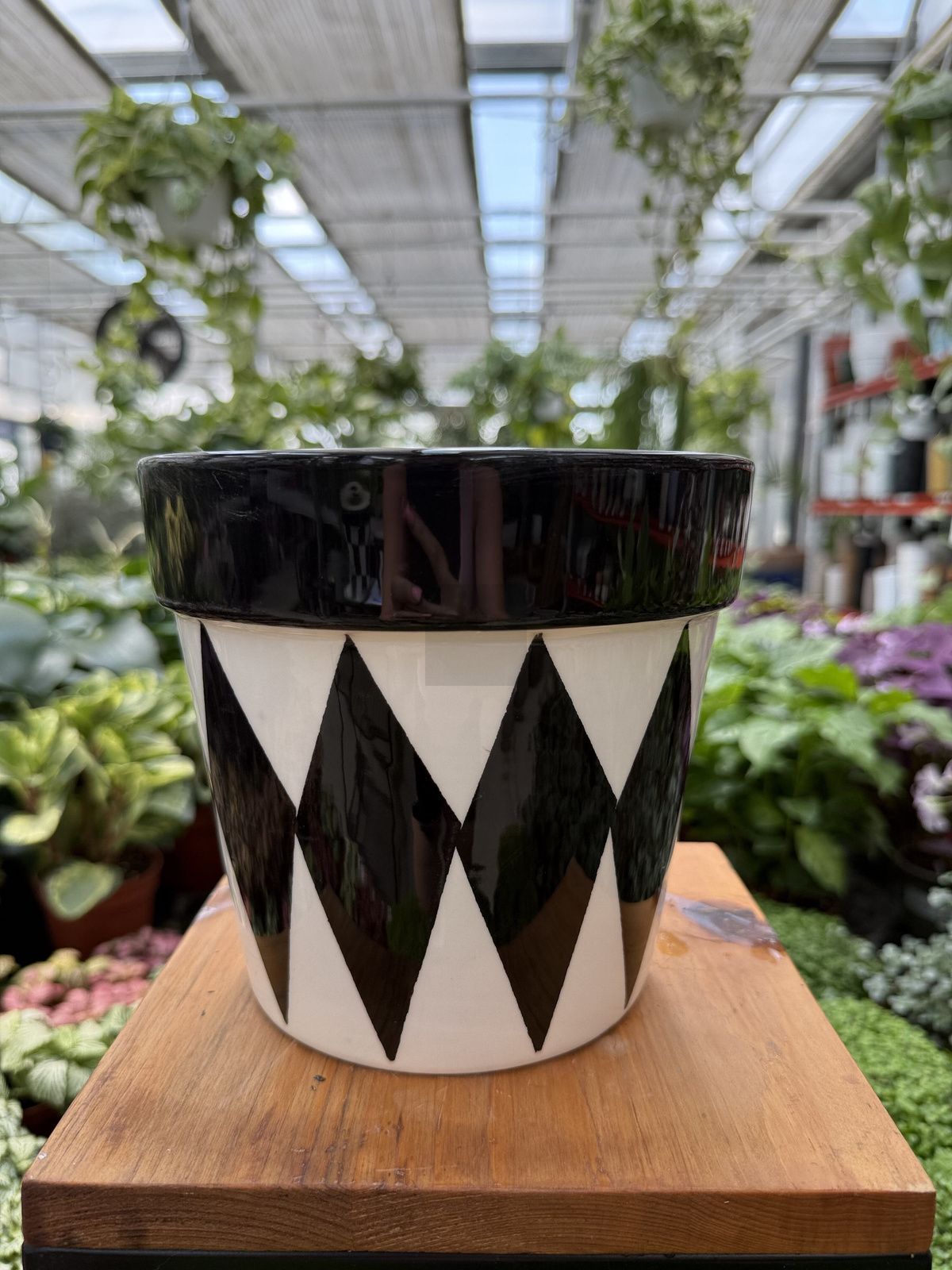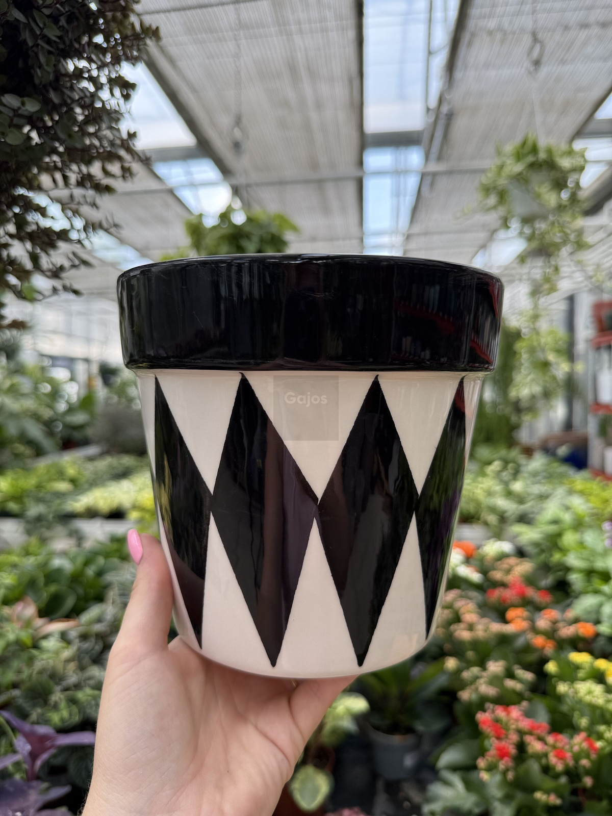 Stwórz unikalną aranżację z ceramiczną donicą w czarno-białe romby – połączenie stylu, jakości i funkcjonalności!