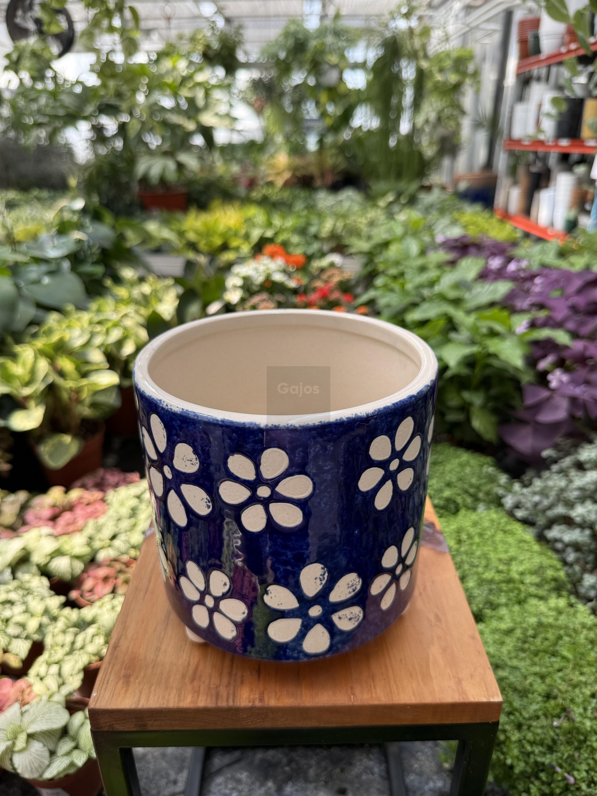 Nadaj swoim roślinom wyjątkową oprawę dzięki ceramicznej osłonce w granatowym kolorze z motywem białych kwiatów. To połączenie klasyki i delikatności sprawia, że osłonka doskonale wpisuje się w eleganckie, romantyczne i tradycyjne wnętrza. Idealna na prezent lub jako wyjątkowy element dekoracyjny.