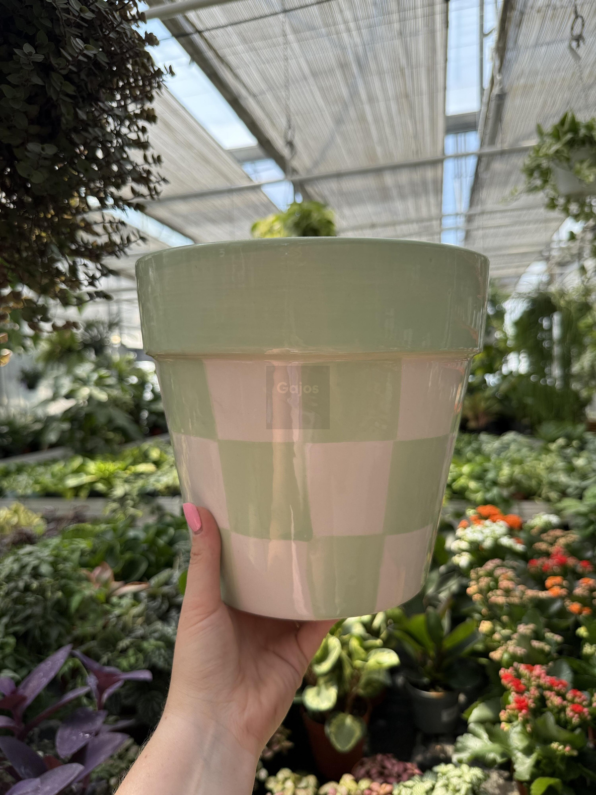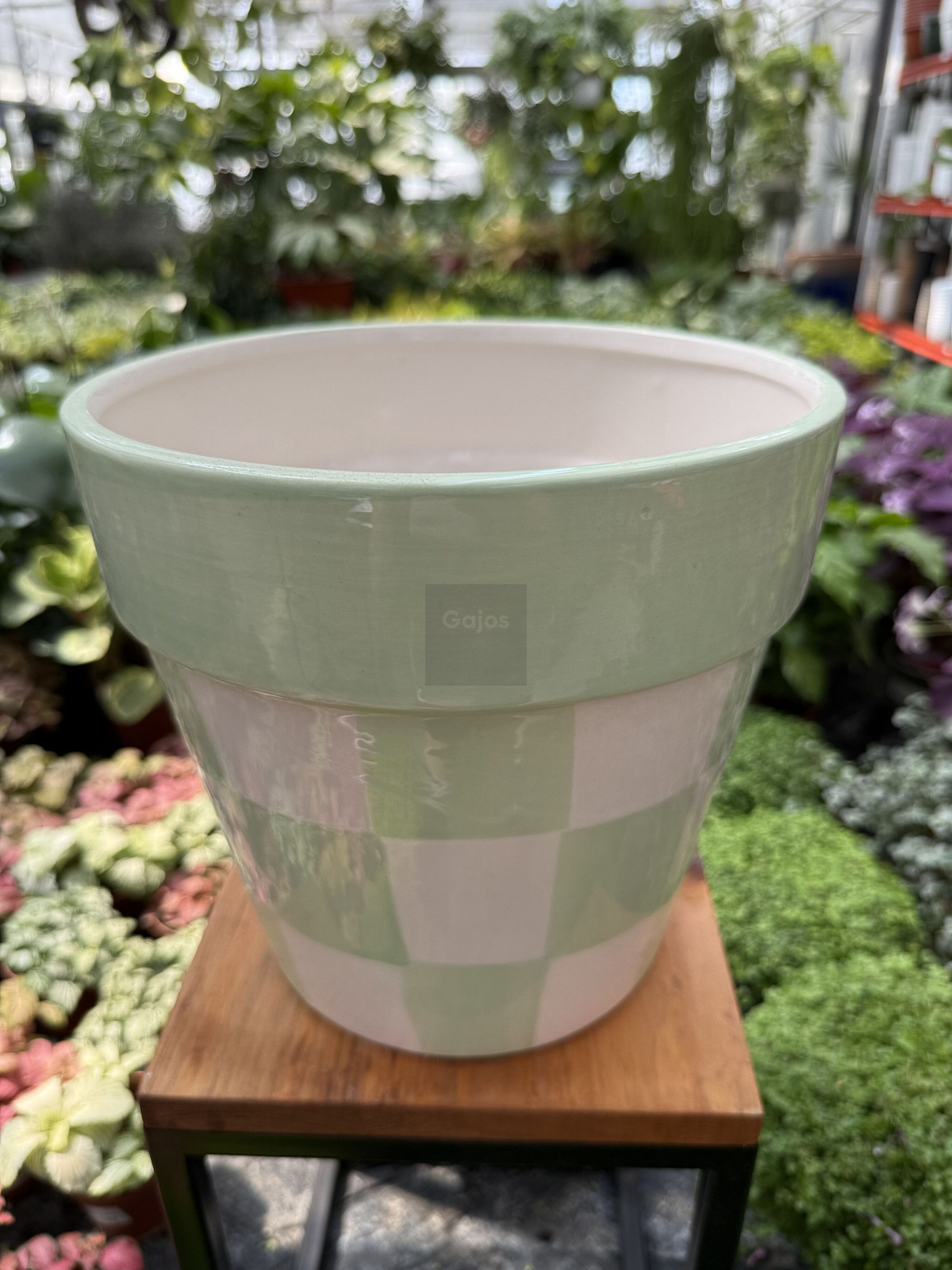 Donica ceramiczna miętowo-biała krata – świeżość i styl w nowoczesnym wydaniu