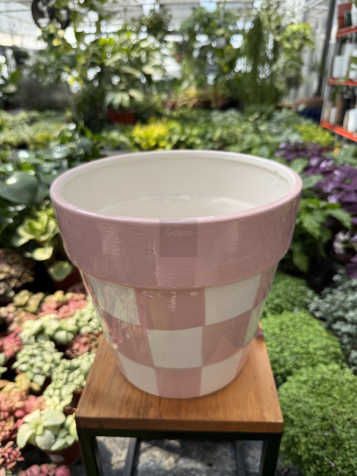 Wybierz donicę ceramiczną biało-różową w kratę i stwórz wyjątkową przestrzeń z nutą pastelowej elegancji.