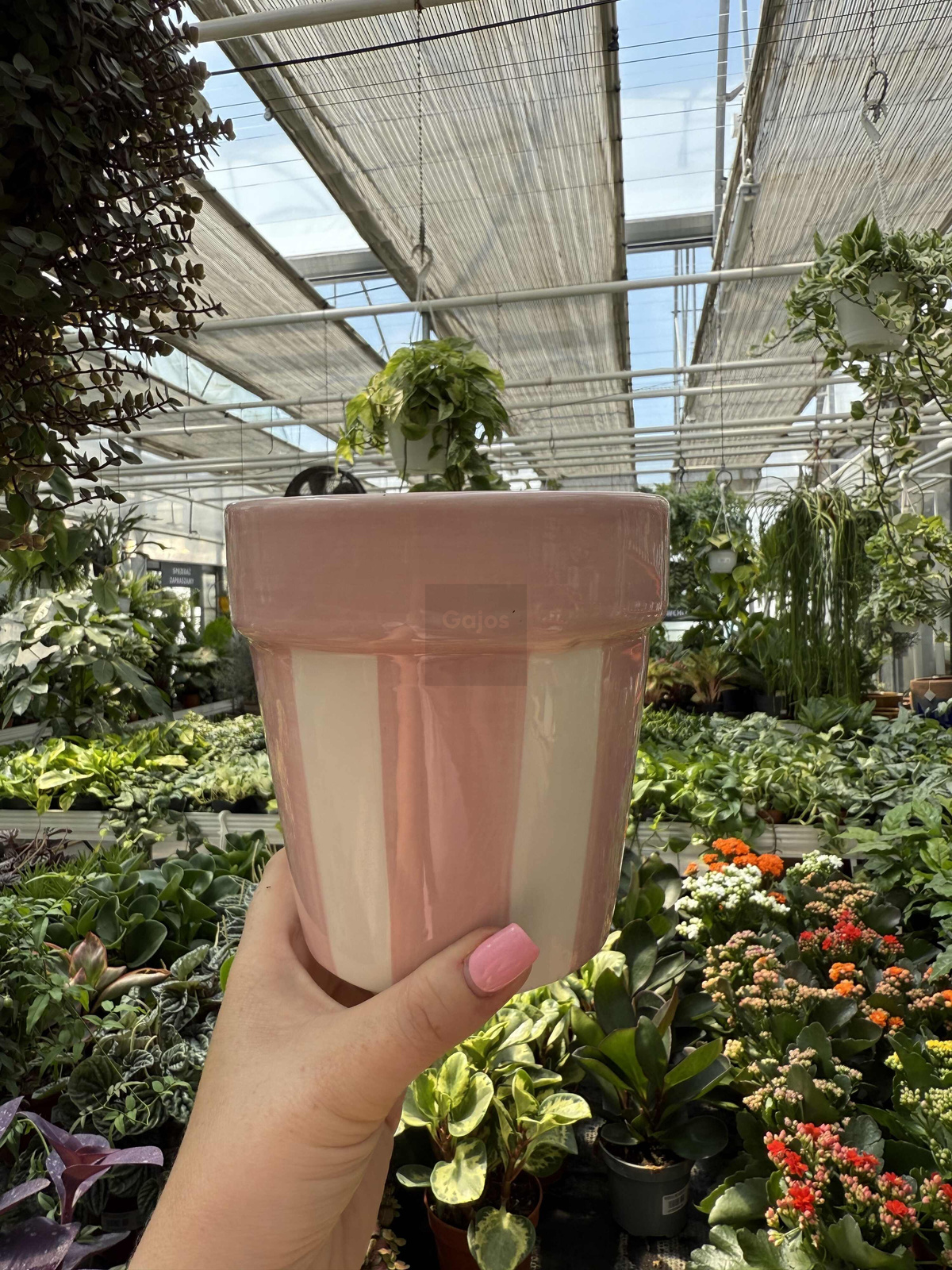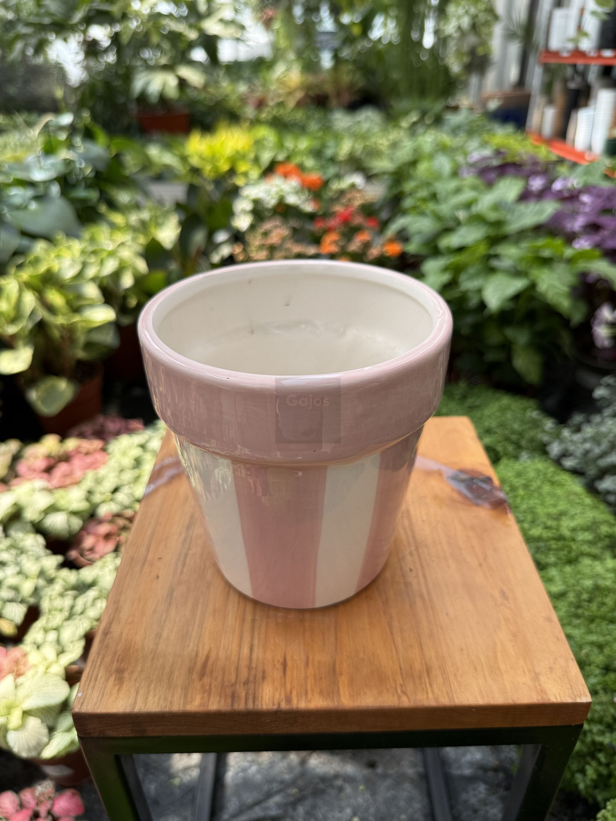 Wybierz donicę ceramiczną biało-różową w pasy i stwórz wyjątkową przestrzeń z nutą pastelowej elegancji.