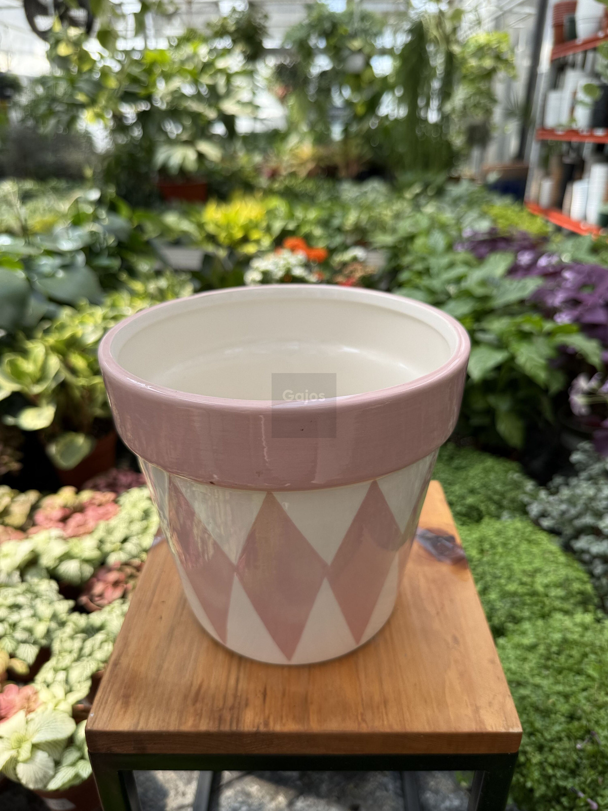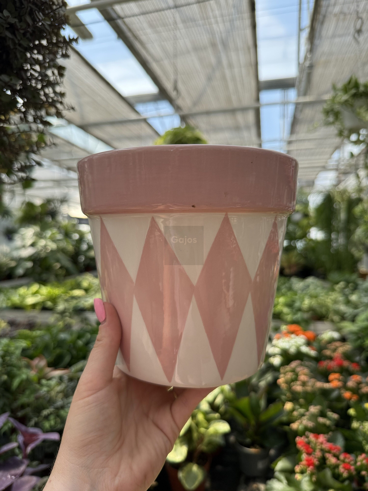 Wybierz donicę ceramiczną biało-różową w romby i stwórz wyjątkową przestrzeń z nutą pastelowej elegancji.