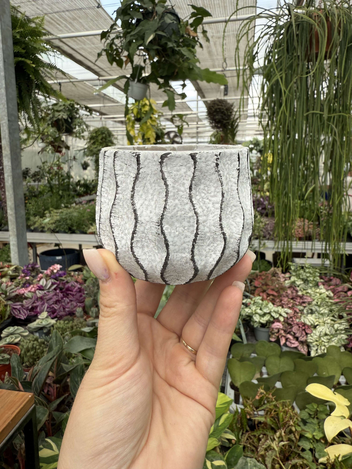 Wprowadź do swojego wnętrza nutę nowoczesnego designu dzięki ceramicznej osłonce „Wave” z dekoracyjnym wzorem fal. Idealna dla miłośników prostoty i harmonijnych form.