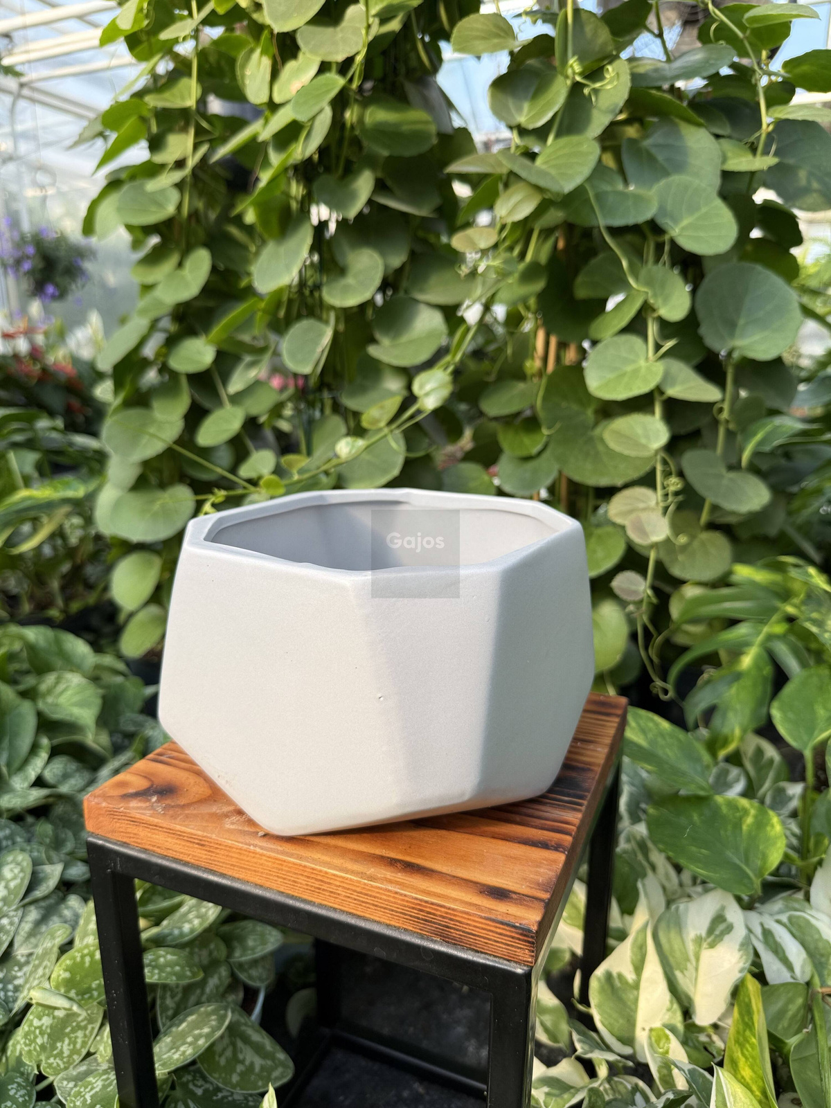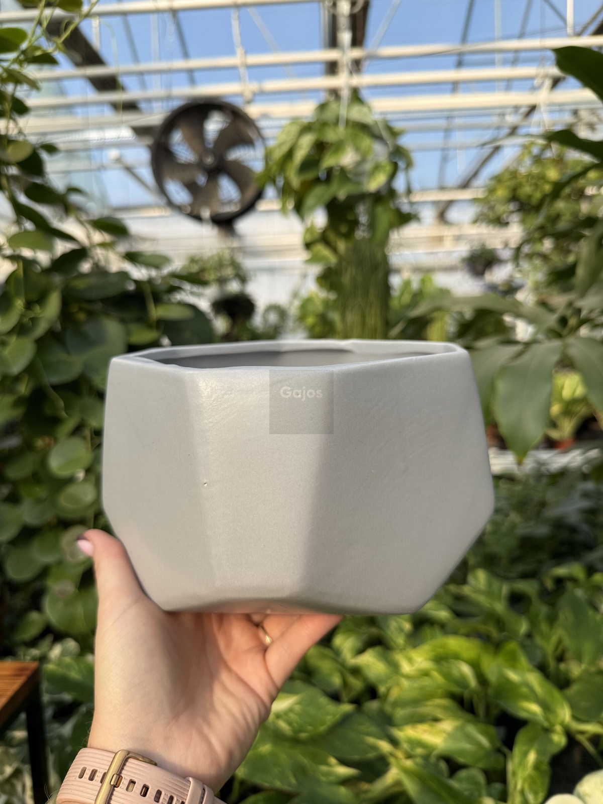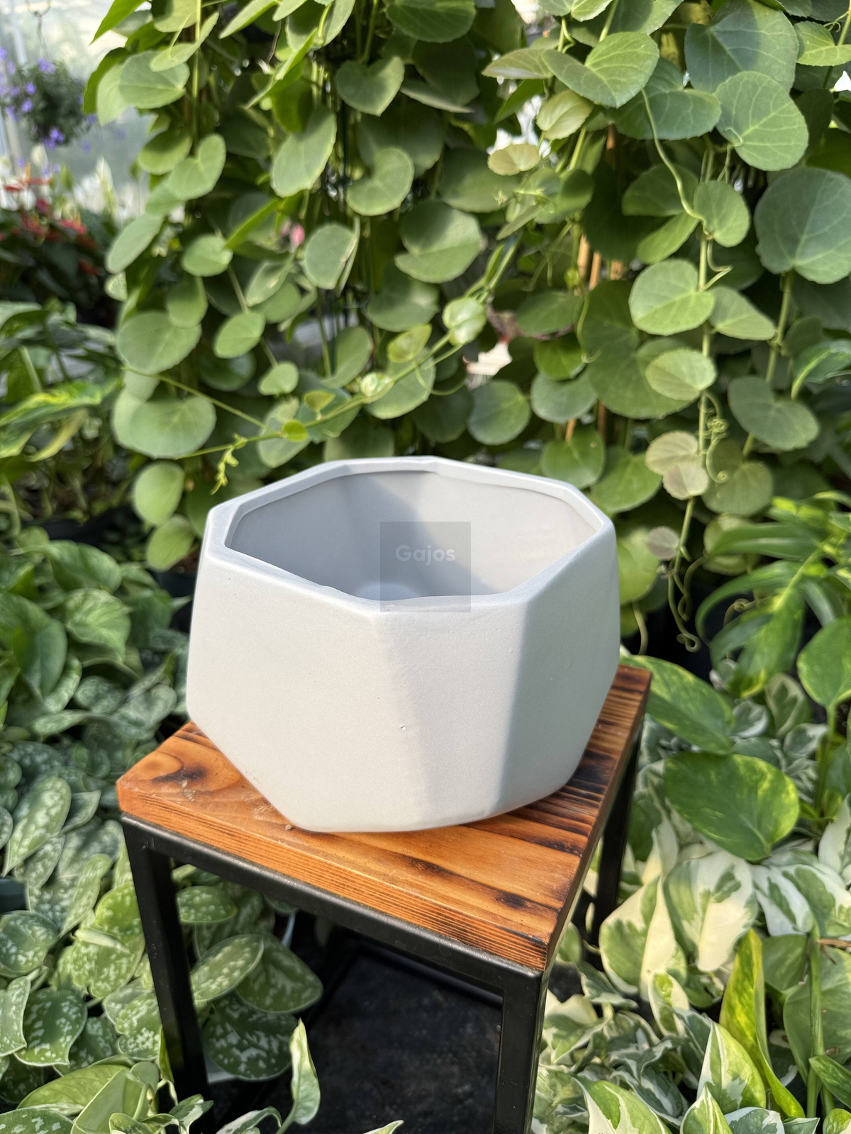 Osłonka Diament Misa Szara to designerska, płaska osłonka ceramiczna, której forma łączy w sobie nowoczesną misę z geometrycznym szlifem inspirowanym diamentem. Wielościenne, fasetowane boki łapią światło, nadając jej głębi i wyrazistego charakteru. Stonowany, szary kolor jest niezwykle uniwersalny i doskonale wpisuje się w trendy nowoczesnych, minimalistycznych i skandynawskich wnętrz.