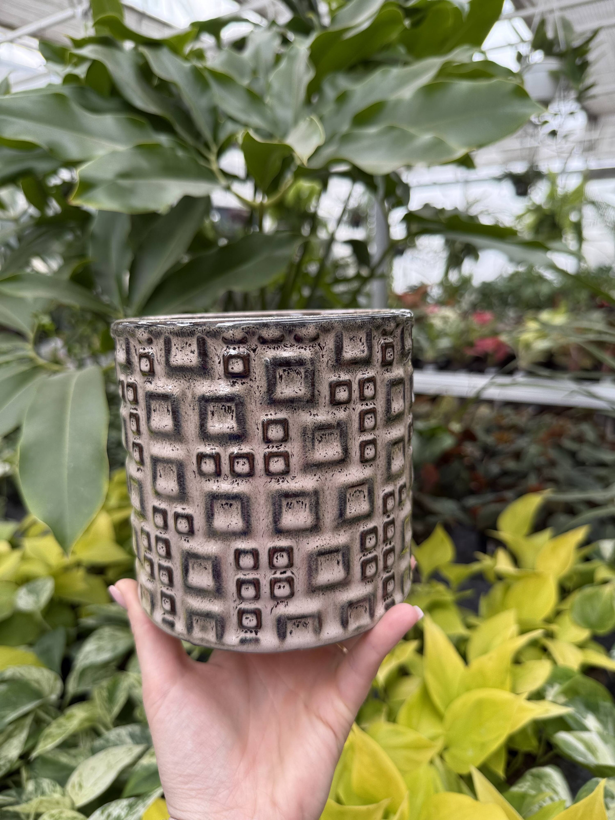 Donica ceramiczna z geometrycznymi wzorami to stylowy dodatek, który łączy funkcjonalność z dekoracyjnym charakterem. Ręcznie wykończona powierzchnia z unikalnym wzorem przyciąga wzrok i nadaje przestrzeni nowoczesnego, a zarazem przytulnego klimatu. Doskonale sprawdzi się jako ozdoba salonu, biura, tarasu czy ogrodu zimowego.