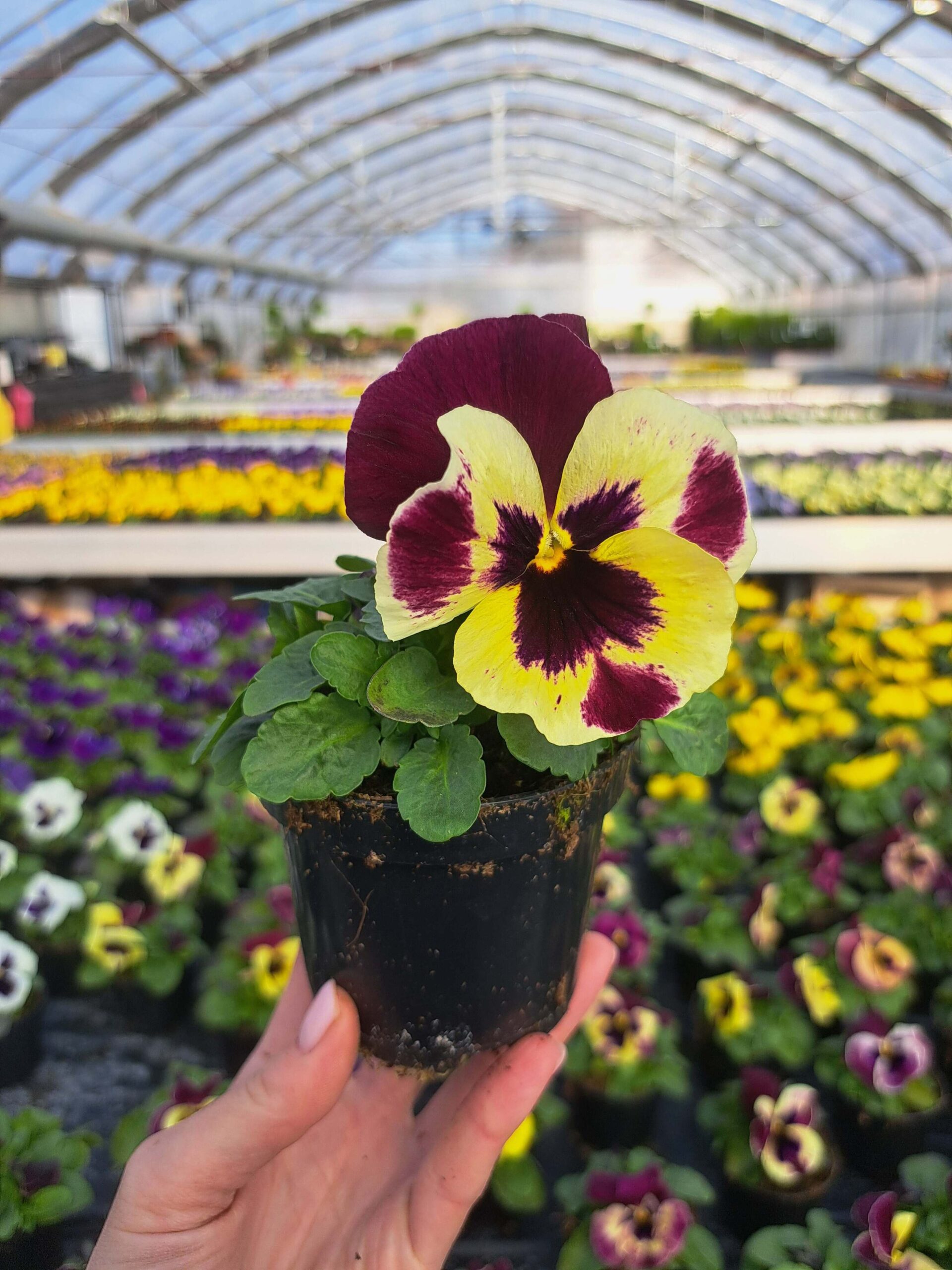BRATEK WIELKOKWIATOWY BORDOWO-ŻÓŁTY Z CZARNYM OCZKIEM ZESTAW 12 SZTUK