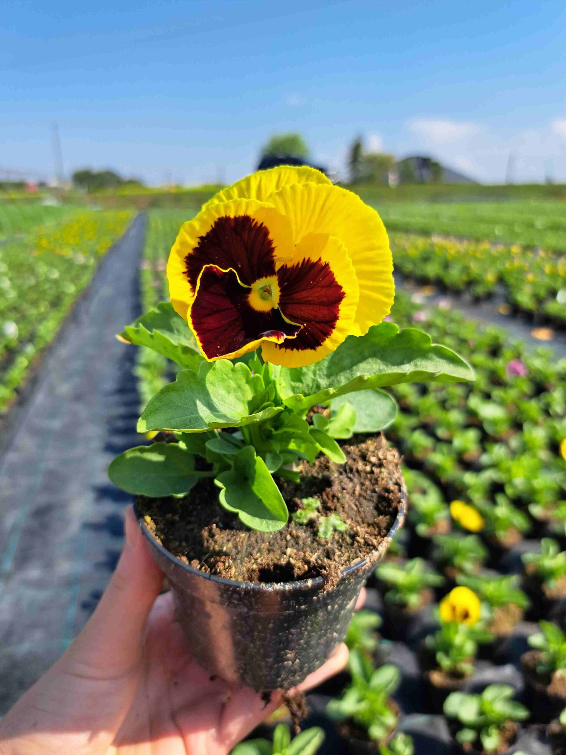 BRATEK WIELKOKWIATOWY ŻÓŁTY Z CZARNYM OCZKIEM ZESTAW 12 SZTUK