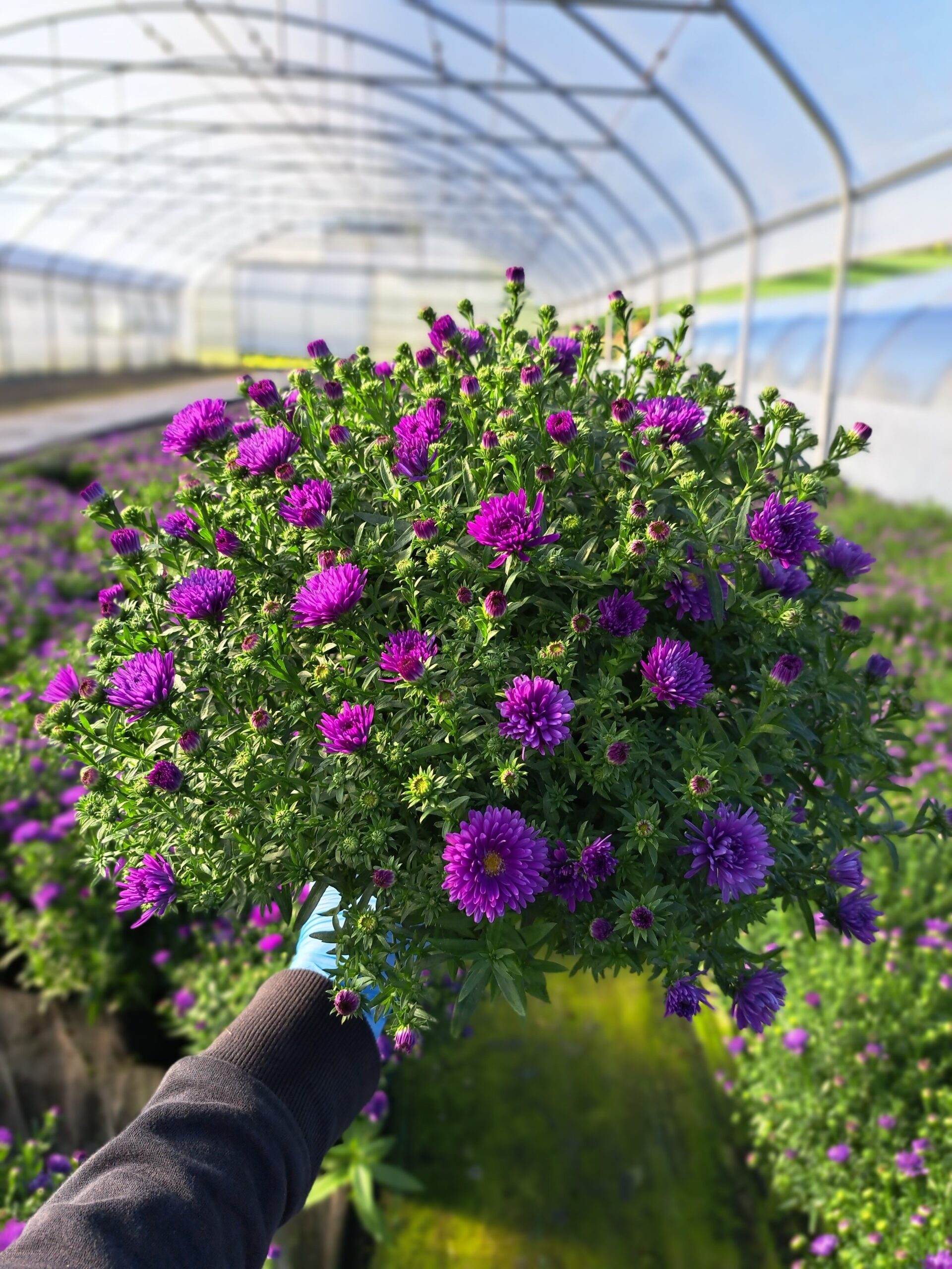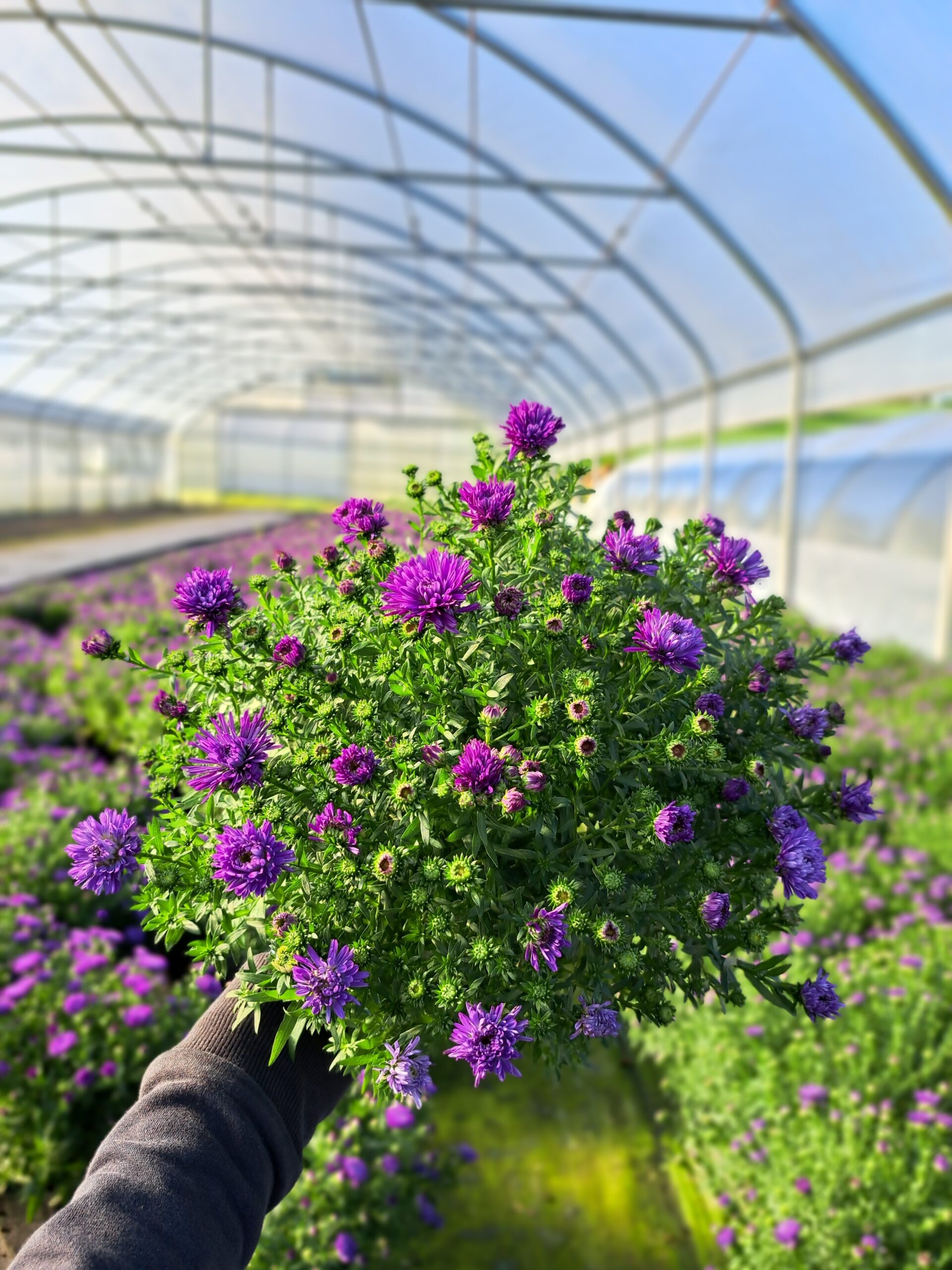ASTER NOWOBELGIJSKI- MICHAŁEK P13 FIOLETOWY CIEMNY PEŁNY ZESTAW 6 SZTUK