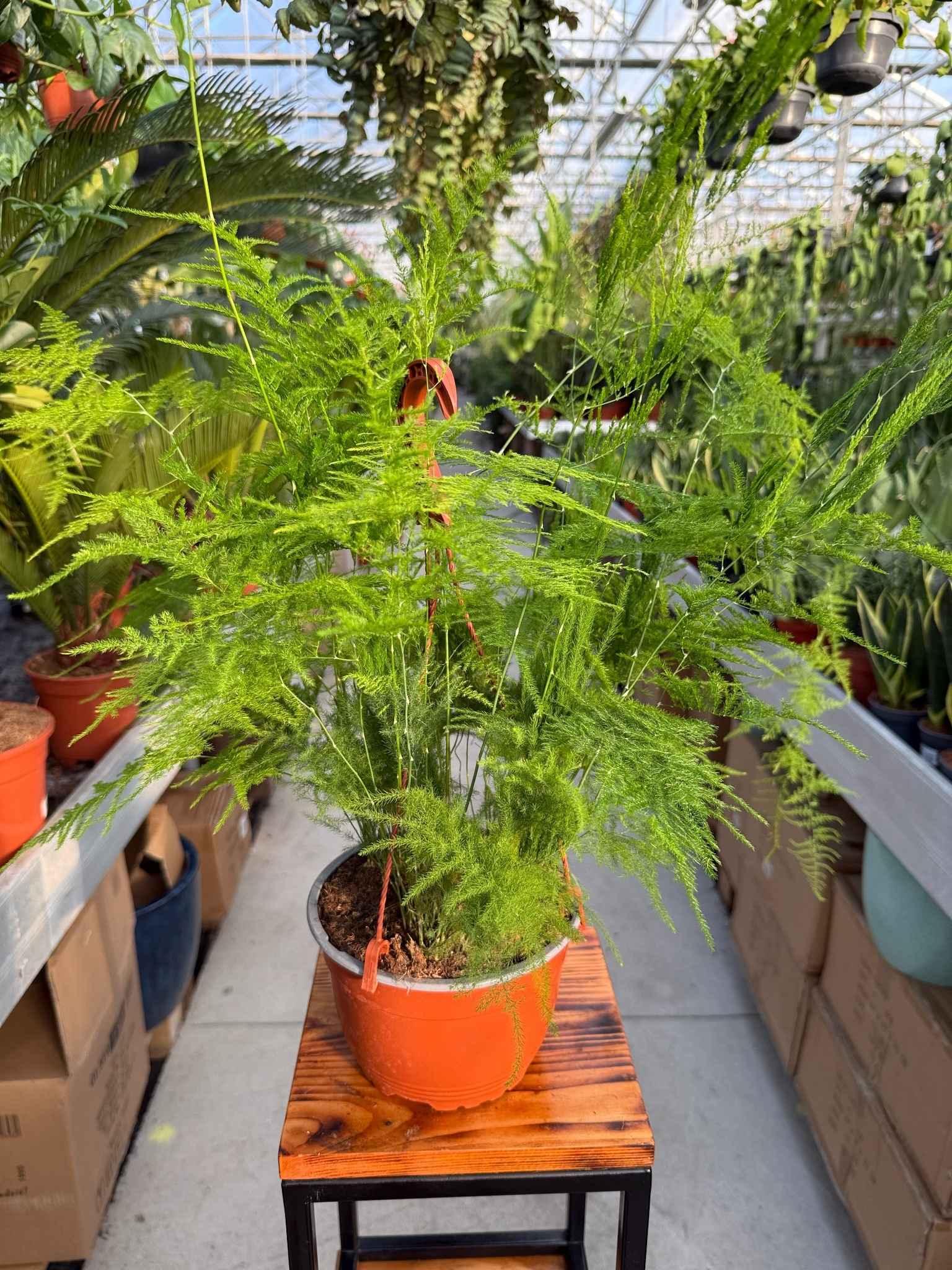 Asparagus Plumosus to bardzo duży, okazały szparag o bujnych, pierzastych pędach i drobnych, jasnozielonych listkach. Spektakularny okaz, łatwy w uprawie, idealny do wiszących donic i przestronnych wnętrz.
