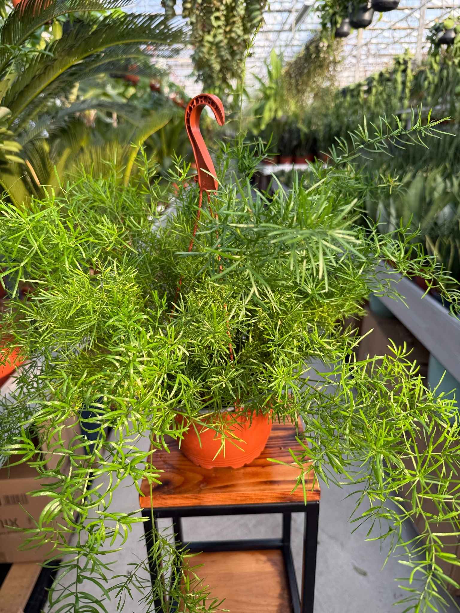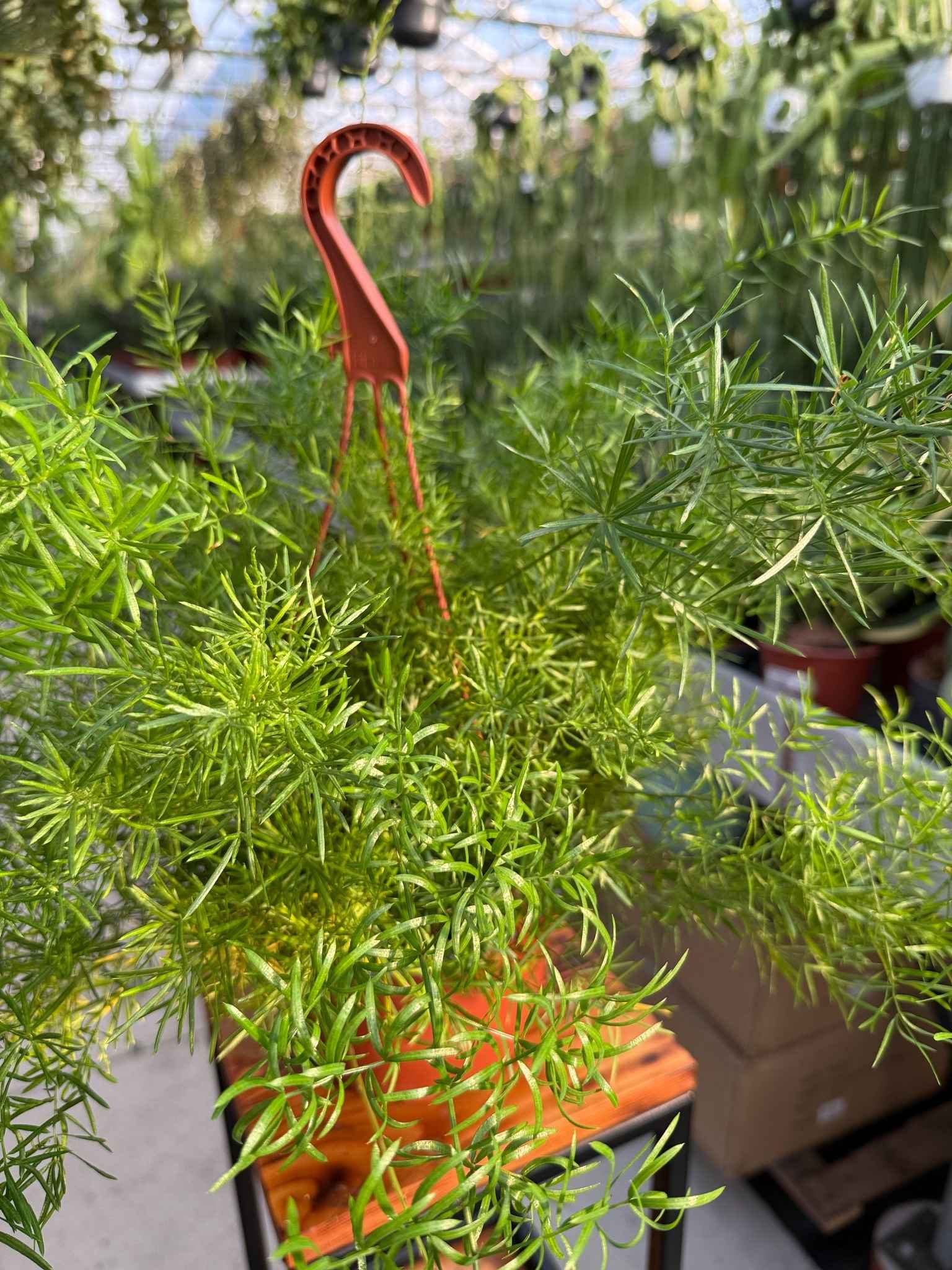 Asparagus Sprengeri to bardzo duży, okazały szparag o bujnych, długich, zwisających pędach i miękkich, igiełkowatych liściach. Spektakularny okaz, łatwy w uprawie, idealny do wiszących donic i przestronnych wnętrz.