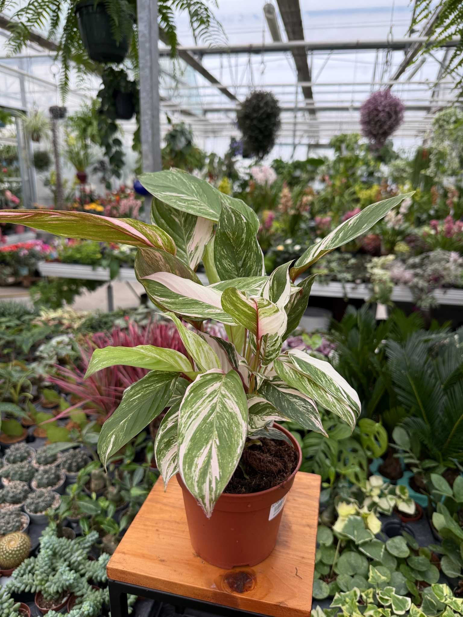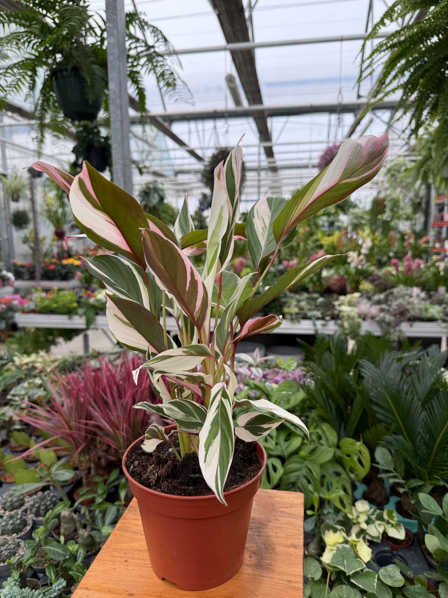 Calathea Princess Dahlia to roślina doniczkowa o dekoracyjnych, biało-zielonych liściach z różowym akcentem i niepowtarzalnymi przebarwieniami – każda roślina jest wyjątkowa. Jej zwarty, bujny pokrój sprawia, że doskonale prezentuje się w mieszkaniach, biurach i innych jasnych przestrzeniach, dodając naturalnego, dekoracyjnego akcentu. Roślina jest łatwa w pielęgnacji przy zachowaniu podstawowych zasad podlewania i stanowiska.