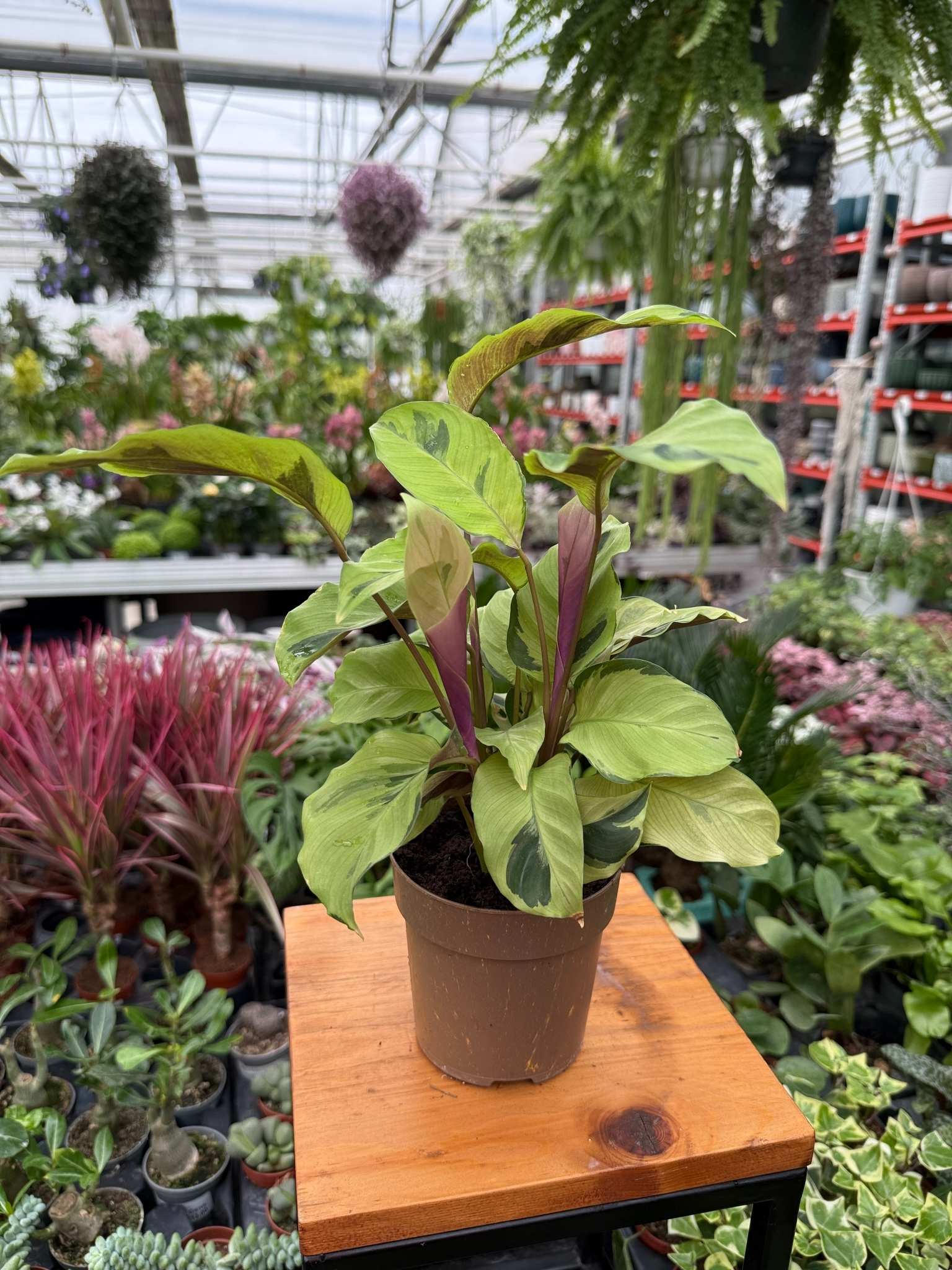 Calathea Yellow Miracle wymaga uważnej pielęgnacji, ale w stabilnych warunkach zachowuje intensywne wybarwienie i tworzy gęstą, dekoracyjną kępę liści.