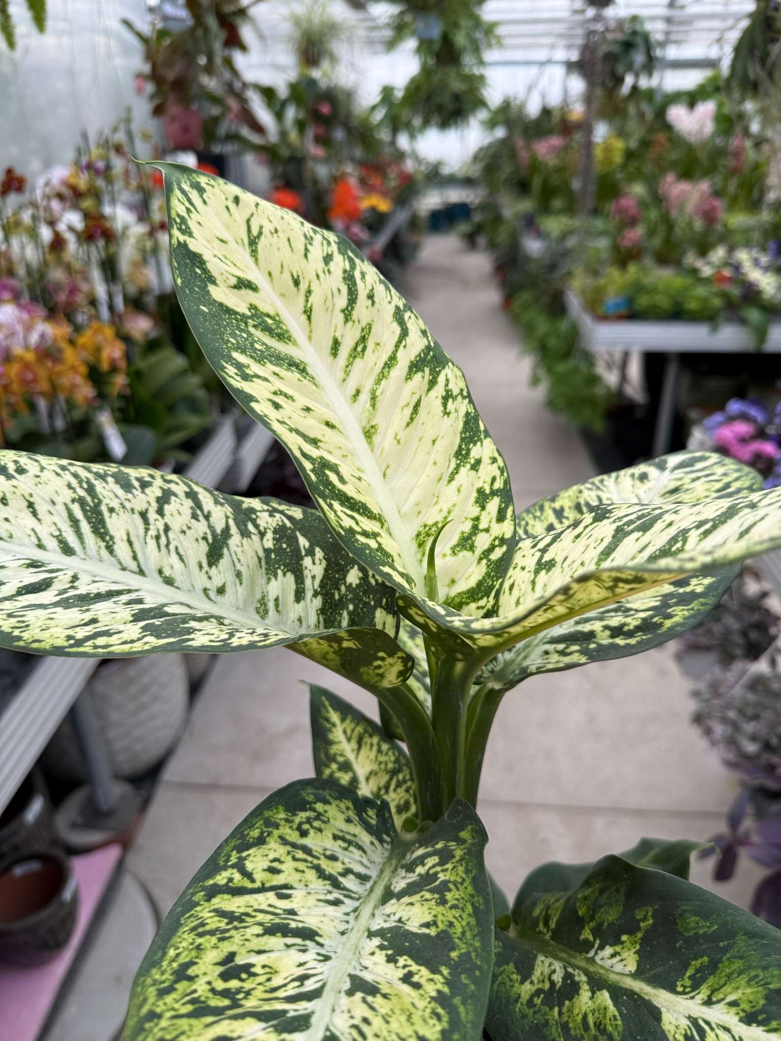 Dieffenbachia Sublime szybko buduje efekt gęstej, wyrazistej zieleni i wprowadza do wnętrza mocny, tropikalny akcent.