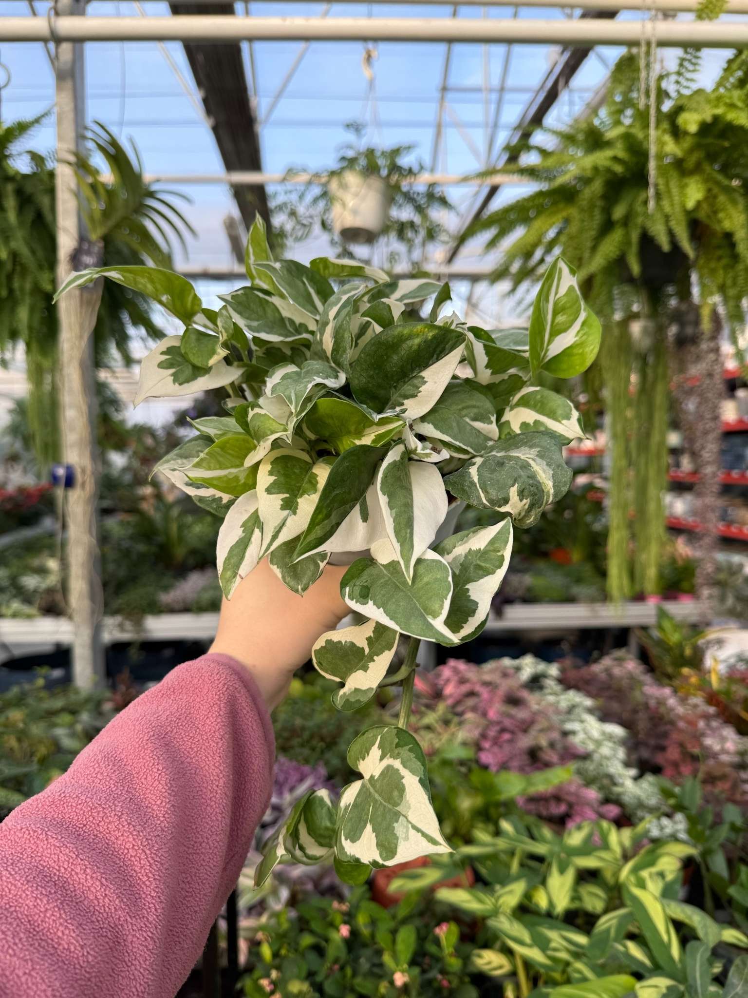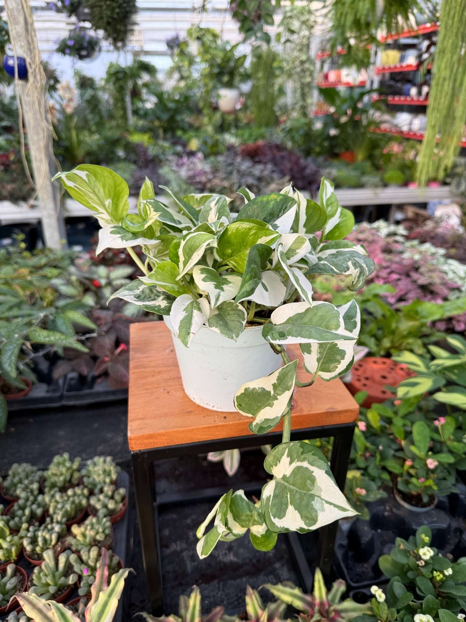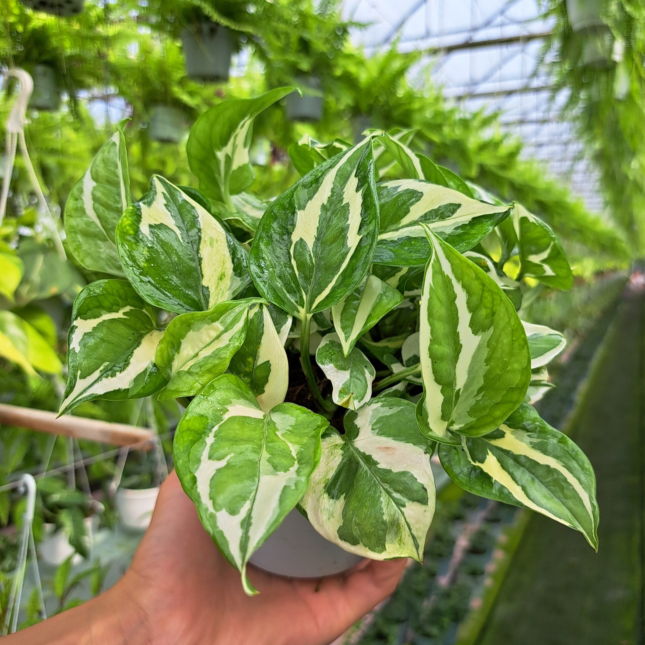 Epipremnum N’Joy to dekoracyjna roślina doniczkowa o zielono-białych liściach i elastycznym, pnącym pokroju. Jej liście wprowadzają do wnętrza świeży, tropikalny akcent, a możliwość prowadzenia rośliny po podporach lub pozwolenia jej swobodnego opadania w wiszących koszach daje wiele opcji aranżacyjnych.