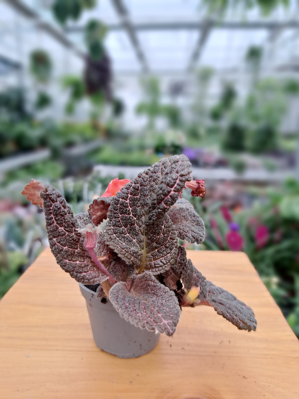 - Unikalne Liście : Aksamitne, wielobarwne liście w odcieniach zieleni, czerwieni i fioletu.