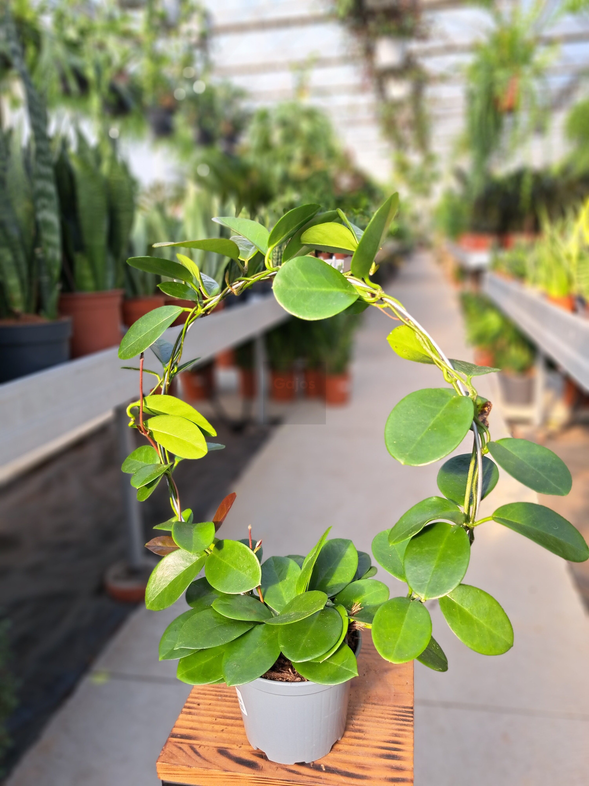 Hoya Australia, znana również jako „woskowa roślina”, to elegancka i efektowna roślina doniczkowa, ceniona za swoje wspaniałe kwiaty oraz błyszczące, mięsiste liście. Pochodząca z Australii, ta odmiana hoyi wyróżnia się niezwykłą urodą, a jej kwiaty, które pojawiają się w czasie letnim, są nie tylko piękne, ale także wydzielają przyjemny zapach. Przedstawiony egzemplarz prowadzony jest na kole.