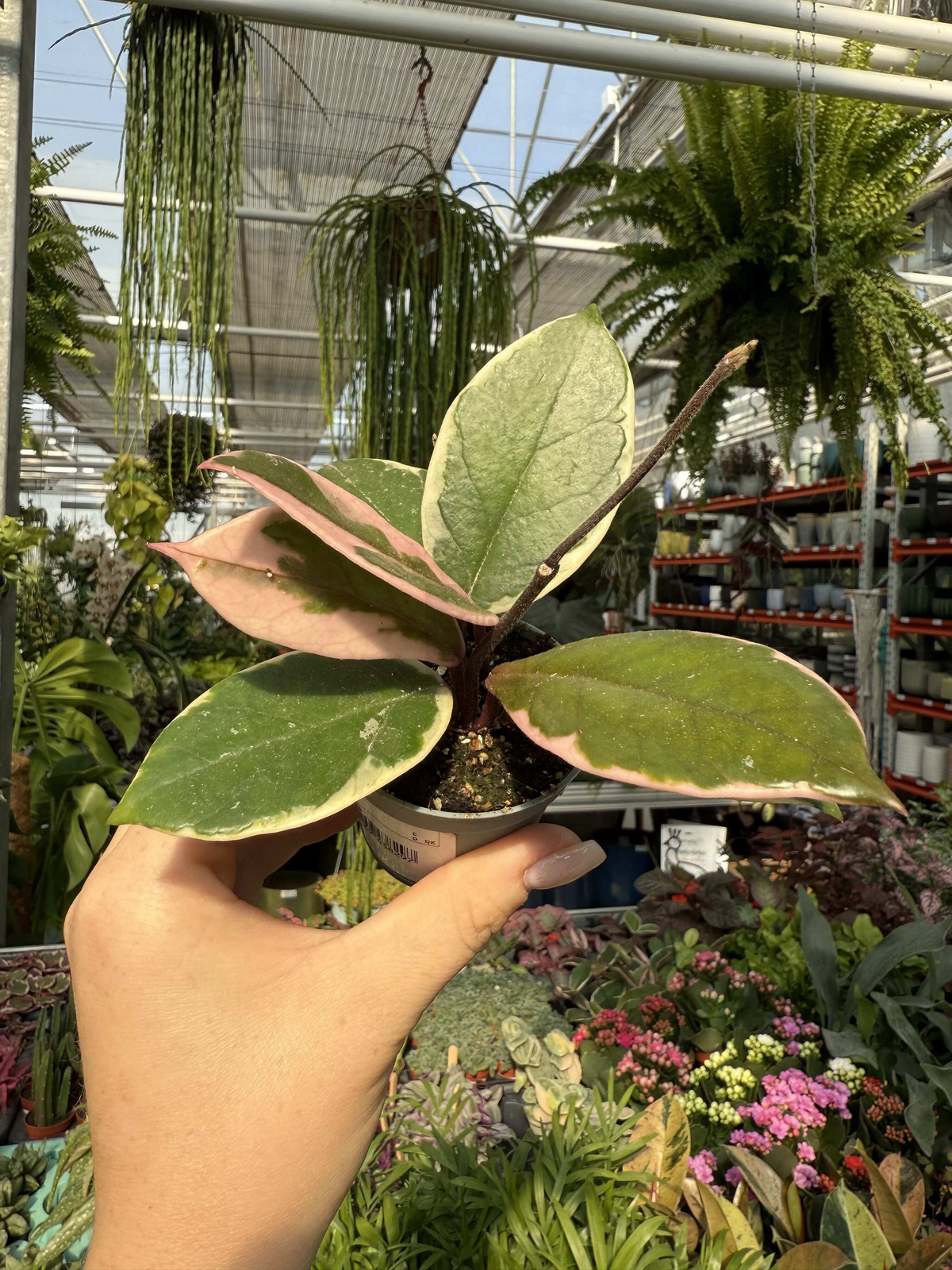 Hoya carnosa ‘Flamingo Dream’ to niezwykła odmiana popularnej hoi, która zachwyca miłośników roślin swoim unikalnym ubarwieniem. Jej mięsiste, błyszczące liście ozdobione są kremowo-różowymi przebarwieniami, które nadają jej egzotycznego charakteru i sprawiają, że wygląda jak żywa dekoracja. W odpowiednich warunkach hoja potrafi zakwitnąć, tworząc efektowne baldachy drobnych, pachnących kwiatów.