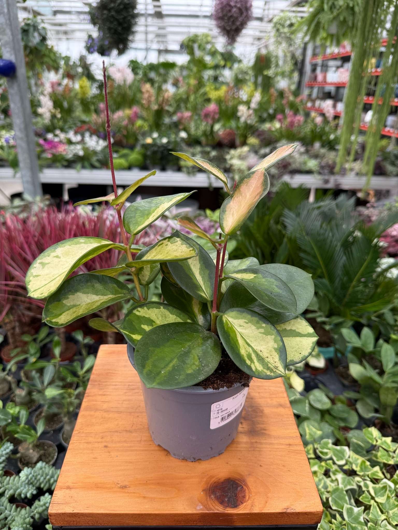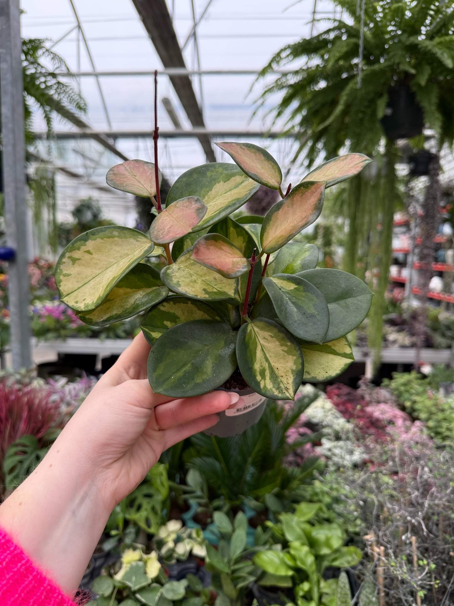 Hoya Carnosa Tricolor to barwna odmiana woskownicy o dekoracyjnych, grubych liściach z kremowo-różową wariegacją. Z czasem tworzy długie, zwisające lub pnące pędy, które dobrze prezentują się na półce, w wiszącej donicy lub przy podporze. To roślina ceniona za wygląd i stosunkowo niewielkie wymagania.