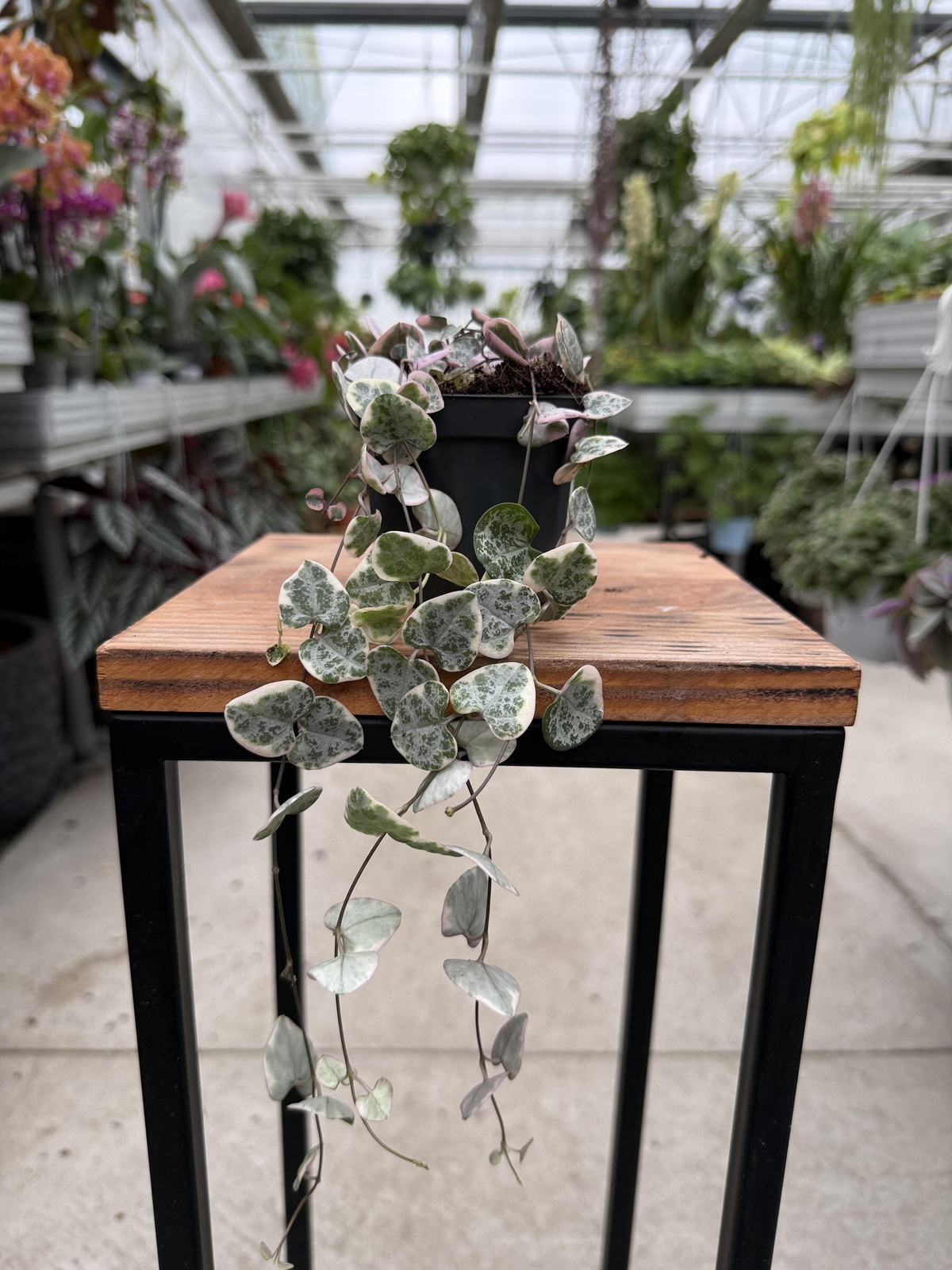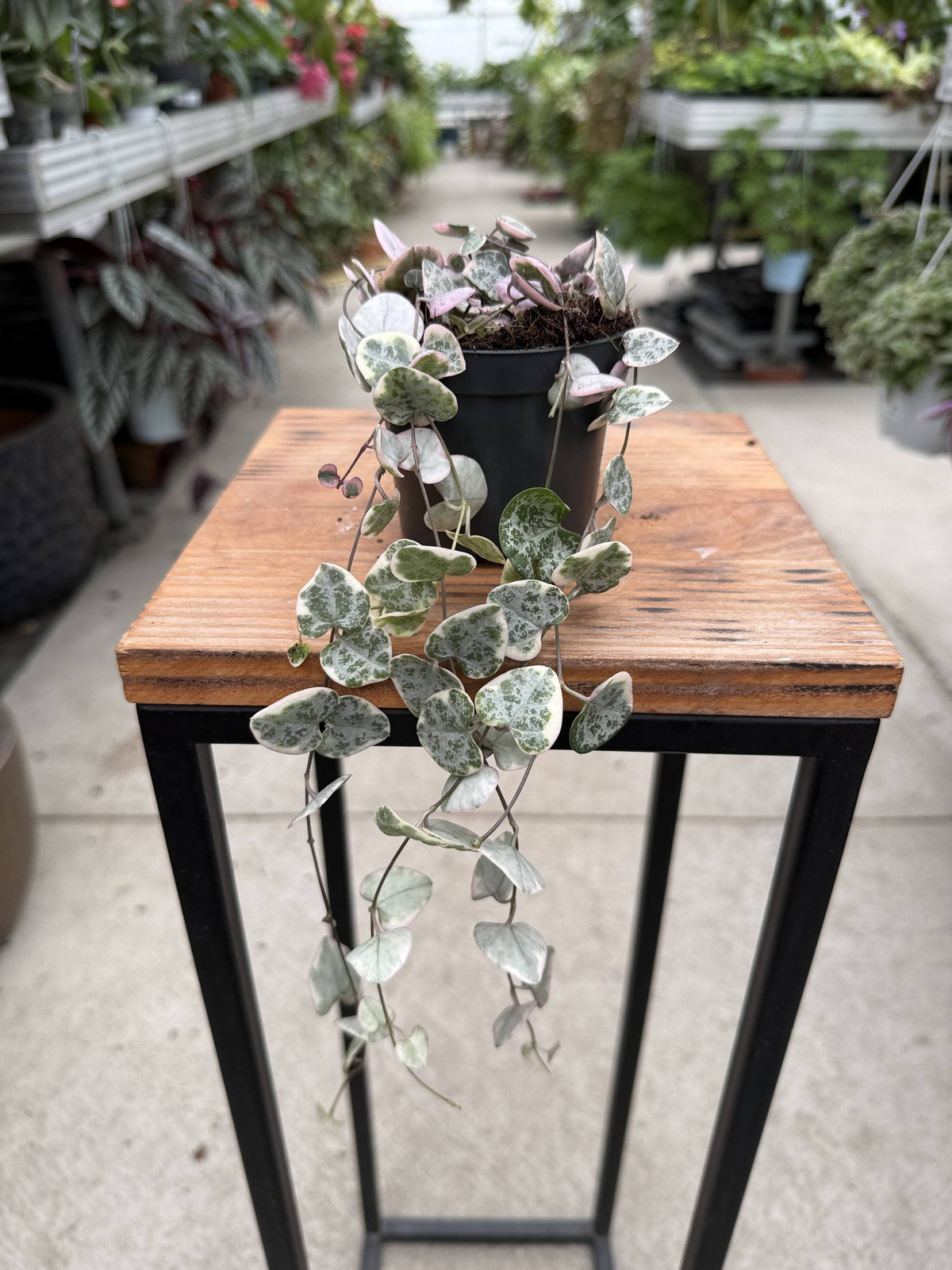 Ceropegia Woodii Variegata, znana też jako „serduszkowa roślina”, to efektowna roślina doniczkowa o długich, zwisających pędach pokrytych małymi, sercowatymi liśćmi w odcieniach zieleni i kremowo-białych przebarwieniach. Jej dekoracyjna forma sprawia, że jest idealna do wiszących donic, półek, regałów i nowoczesnych aranżacji wnętrz.