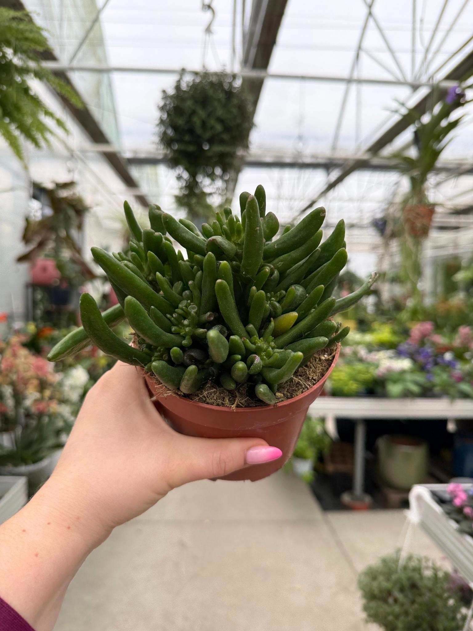 Crassula ovata Hobbit to sukulent o charakterystycznych, rurkowatych liściach. Lubi jasne stanowiska i oszczędne podlewanie, dobrze rośnie w domu.