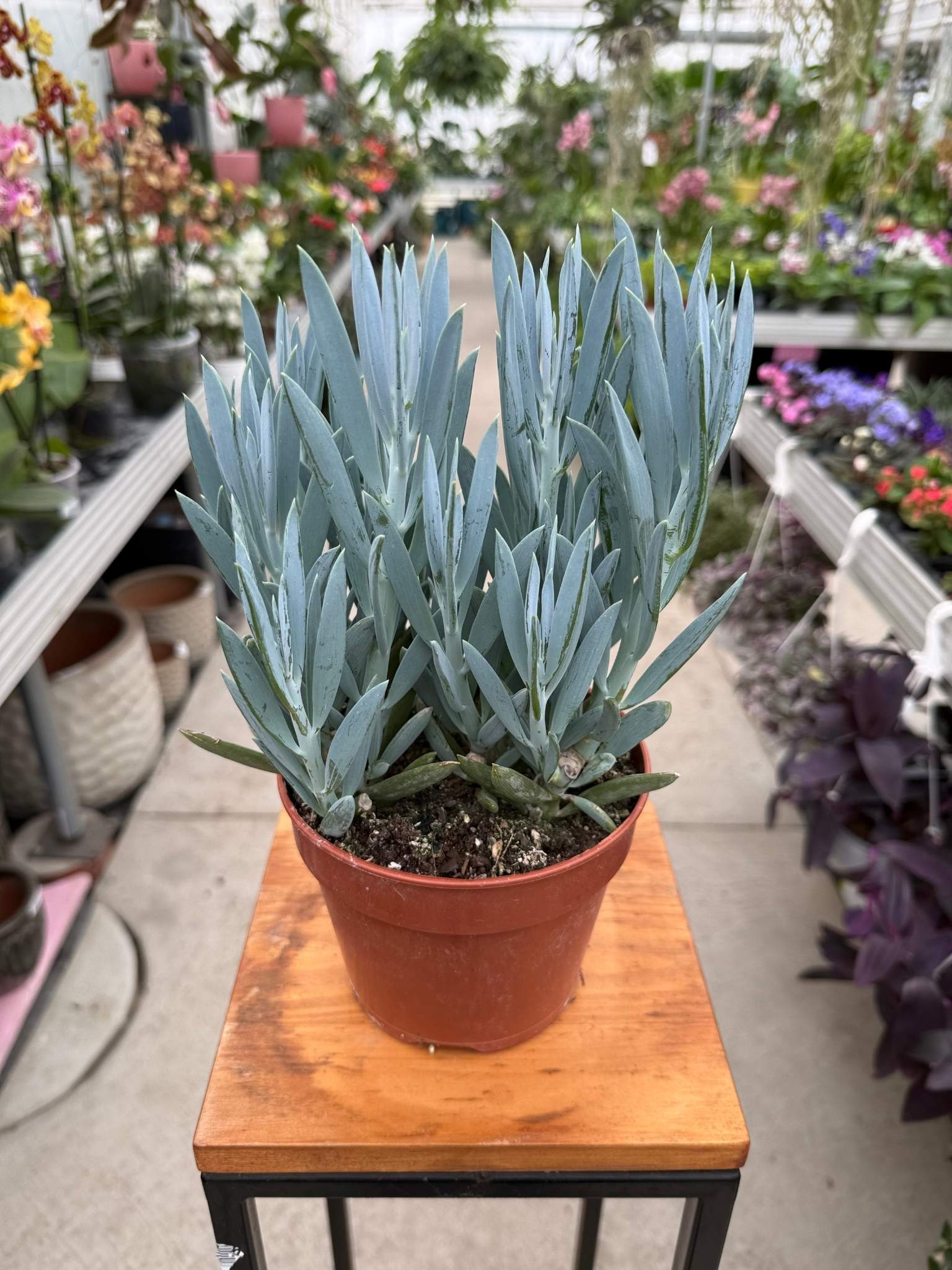 Curio Mount Everest to sukulent o wyraźnie wydłużonych, srebrzystych liściach, które nadają roślinie surowy, uporządkowany wygląd. Jego pokrój jest zwarty, a kolorystyka dobrze kontrastuje z zielenią innych roślin. Najlepiej odnajduje się w jasnych, nasłonecznionych wnętrzach.