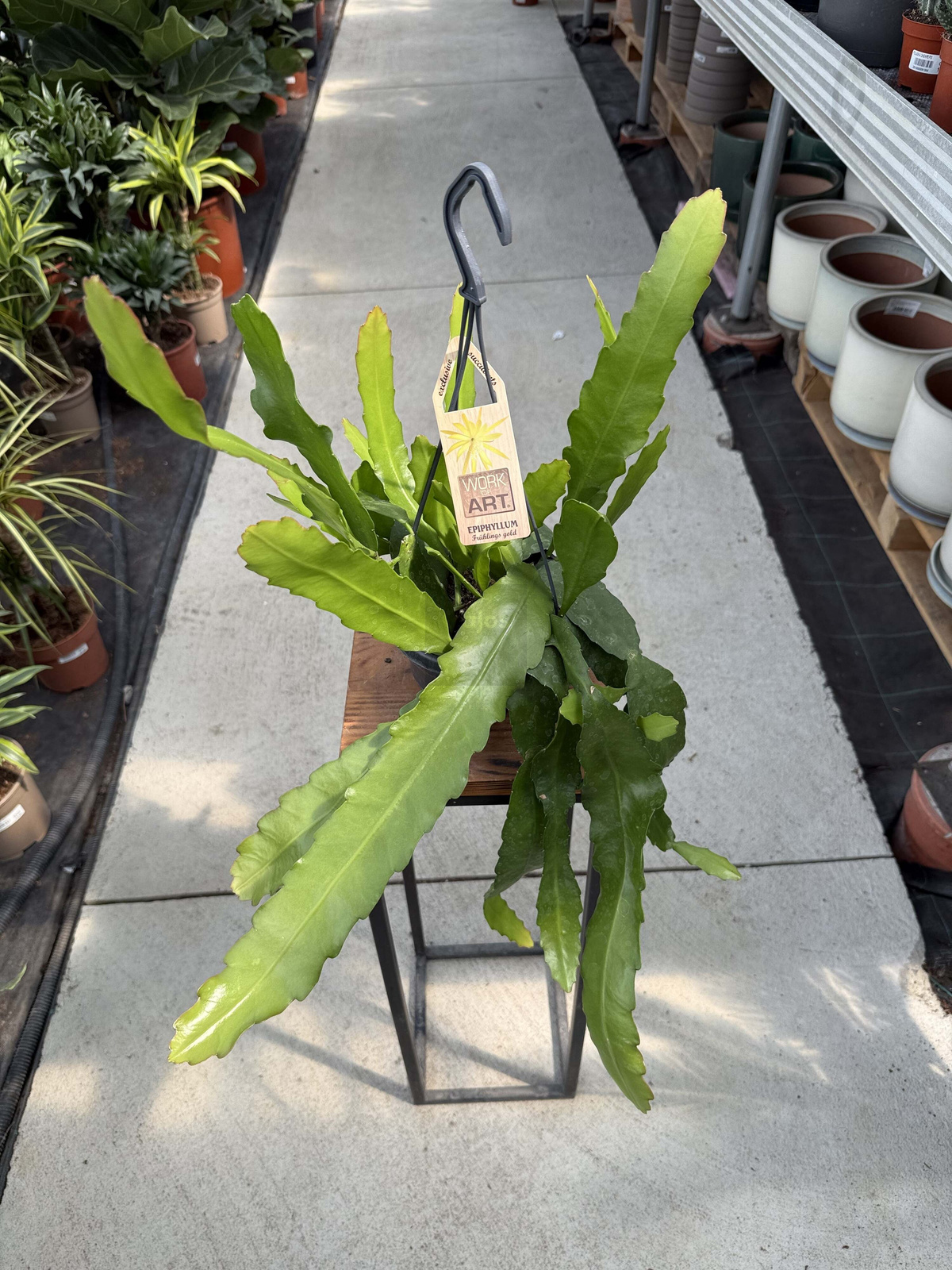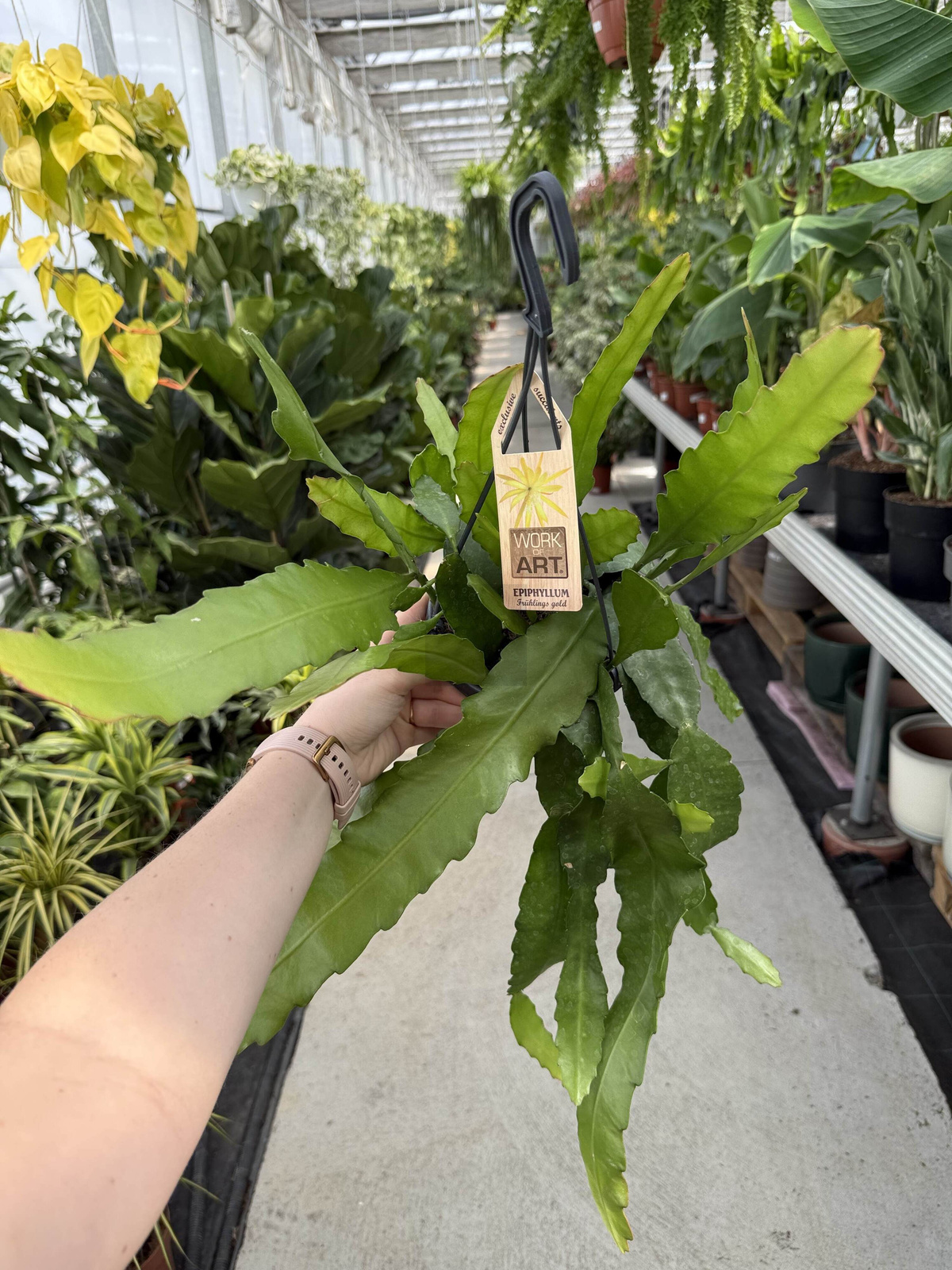 Epiphyllum 'Frühingsgold’ to wyjątkowa roślina doniczkowa, która zachwyca dużymi, żółtymi kwiatami o cytrynowym zapachu. Jej zwisające pędy sprawiają, że doskonale prezentuje się w wiszących donicach. Dzięki łatwej pielęgnacji i efektownemu kwitnieniu jest idealnym wyborem zarówno dla początkujących, jak i doświadczonych miłośników roślin.