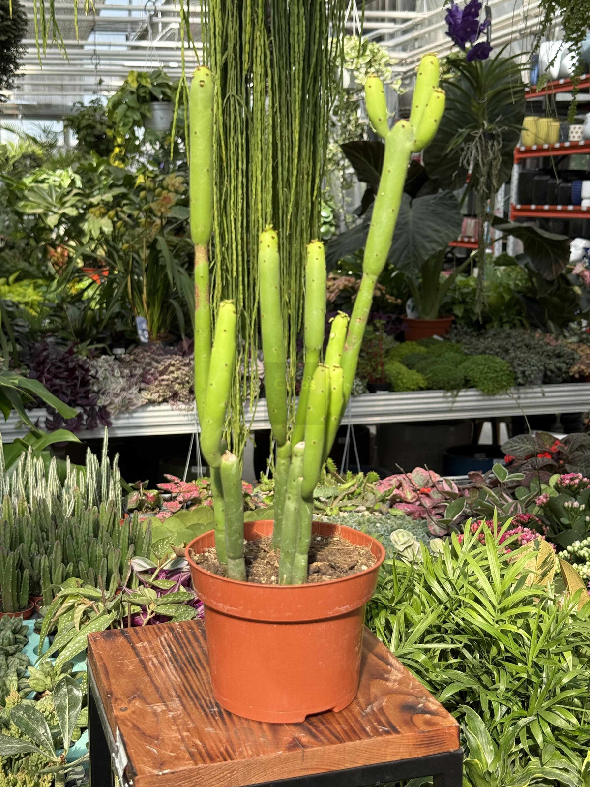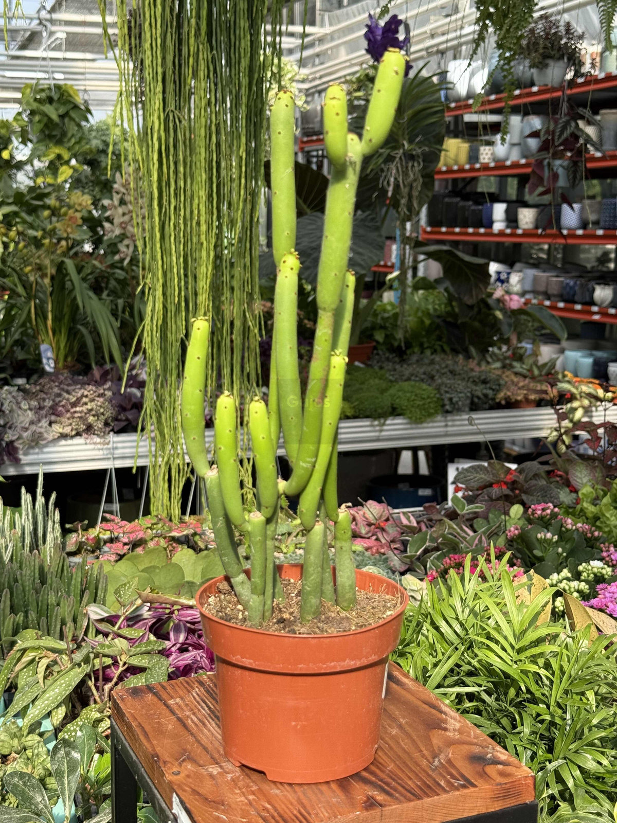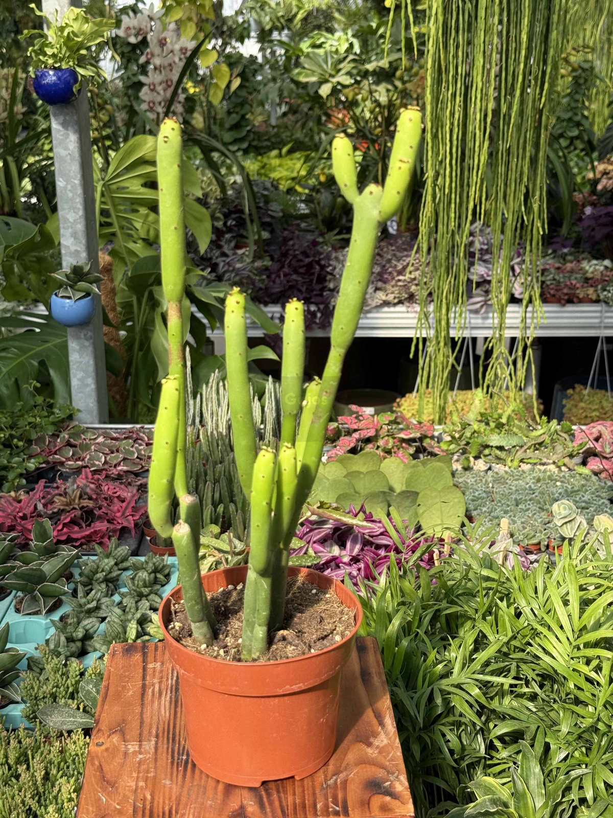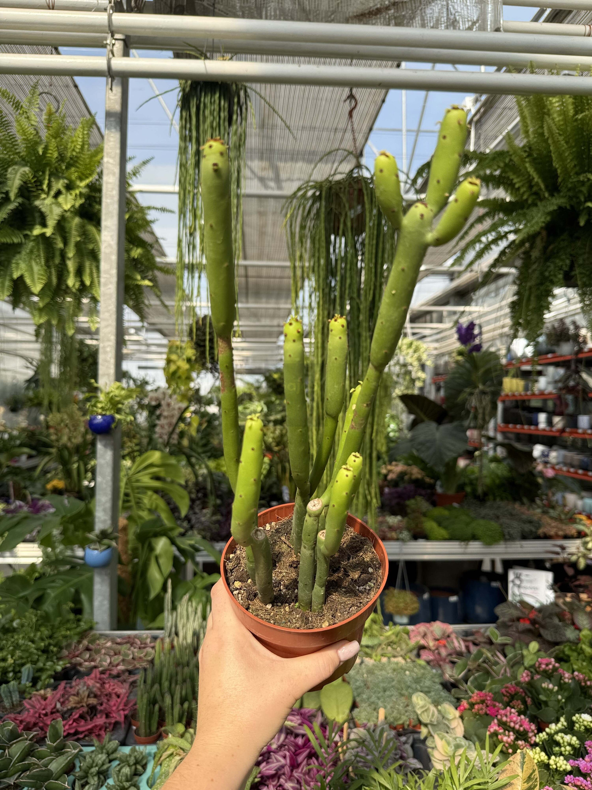 Euphorbia cedorum to wyjątkowa roślina sukulentowa pochodząca z Afryki, ceniona przez kolekcjonerów za swój charakterystyczny pokrój i egzotyczny wygląd. Tworzy mięsiste, podłużne pędy o soczystej zieleni, często z subtelnymi przebarwieniami, które układają się w efektowne kępy. W odpowiednich warunkach może zakwitać, tworząc delikatne, żółtawe kwiaty typowe dla wilczomleczy.
