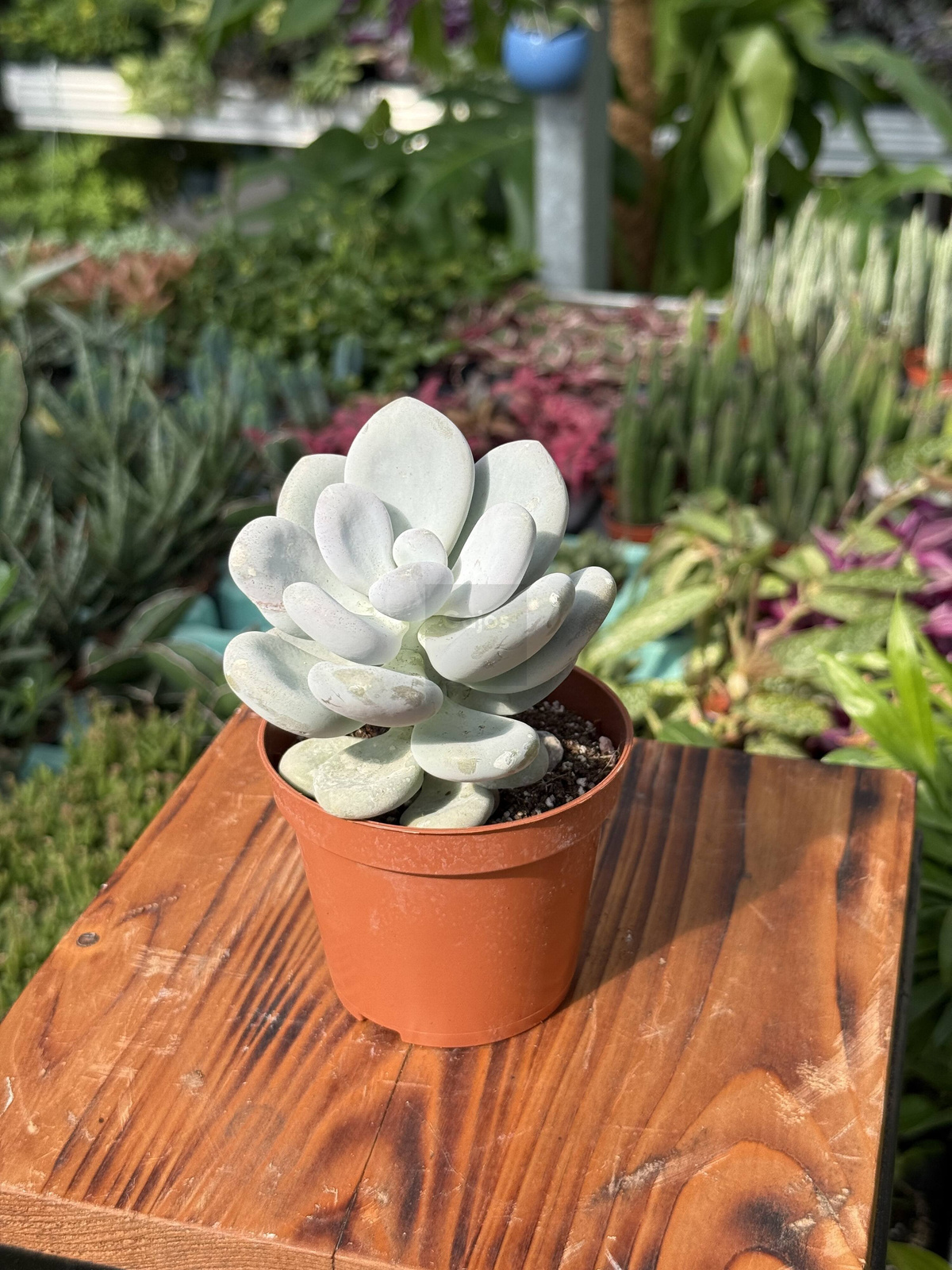 Pachyphytum oviferum to roślina, która przyciąga uwagę swoim subtelnym, pastelowym urokiem. Idealnie sprawdzi się jako soliter w doniczce, a także w kompozycjach z innymi sukulentami i kaktusami.