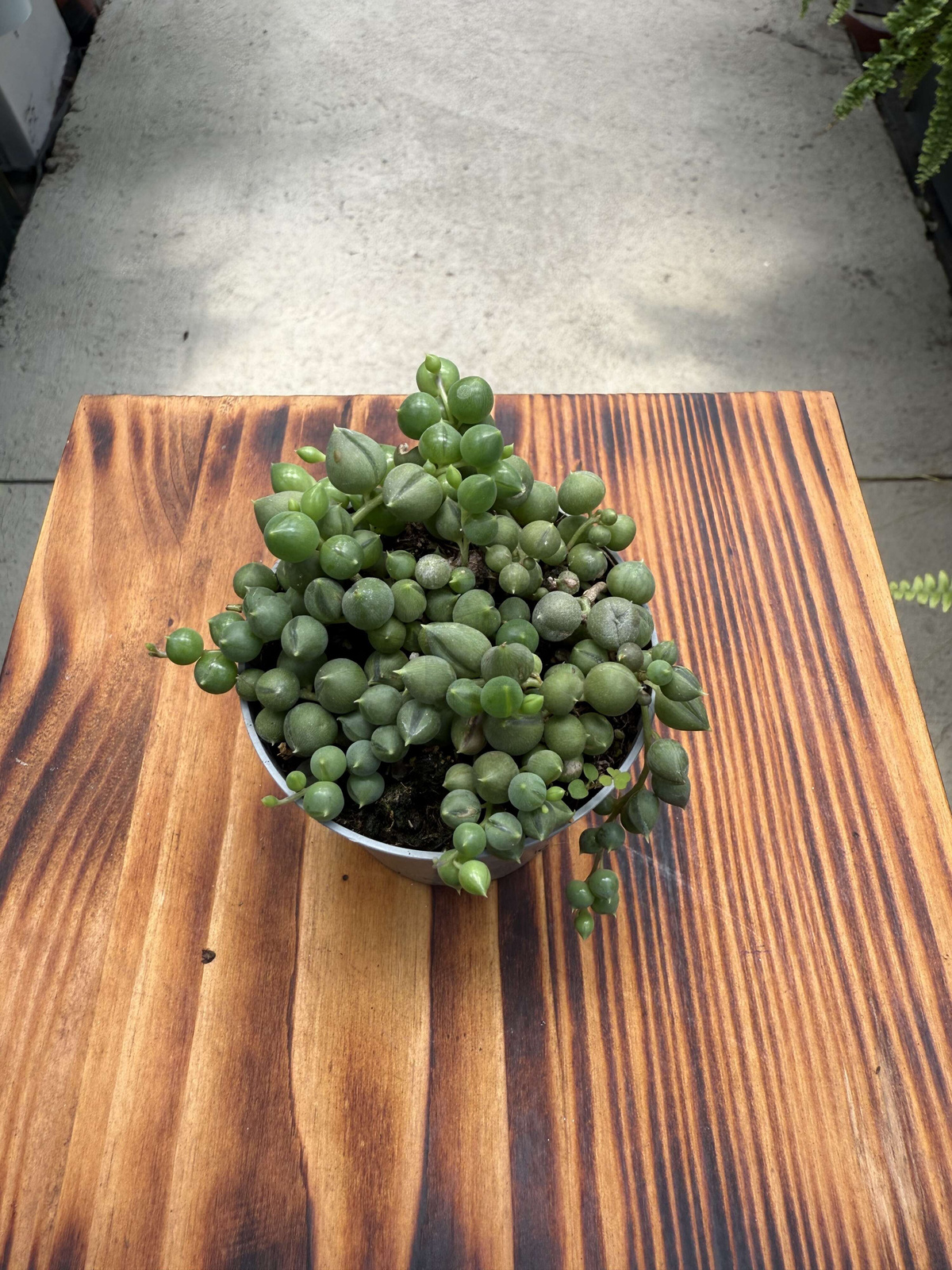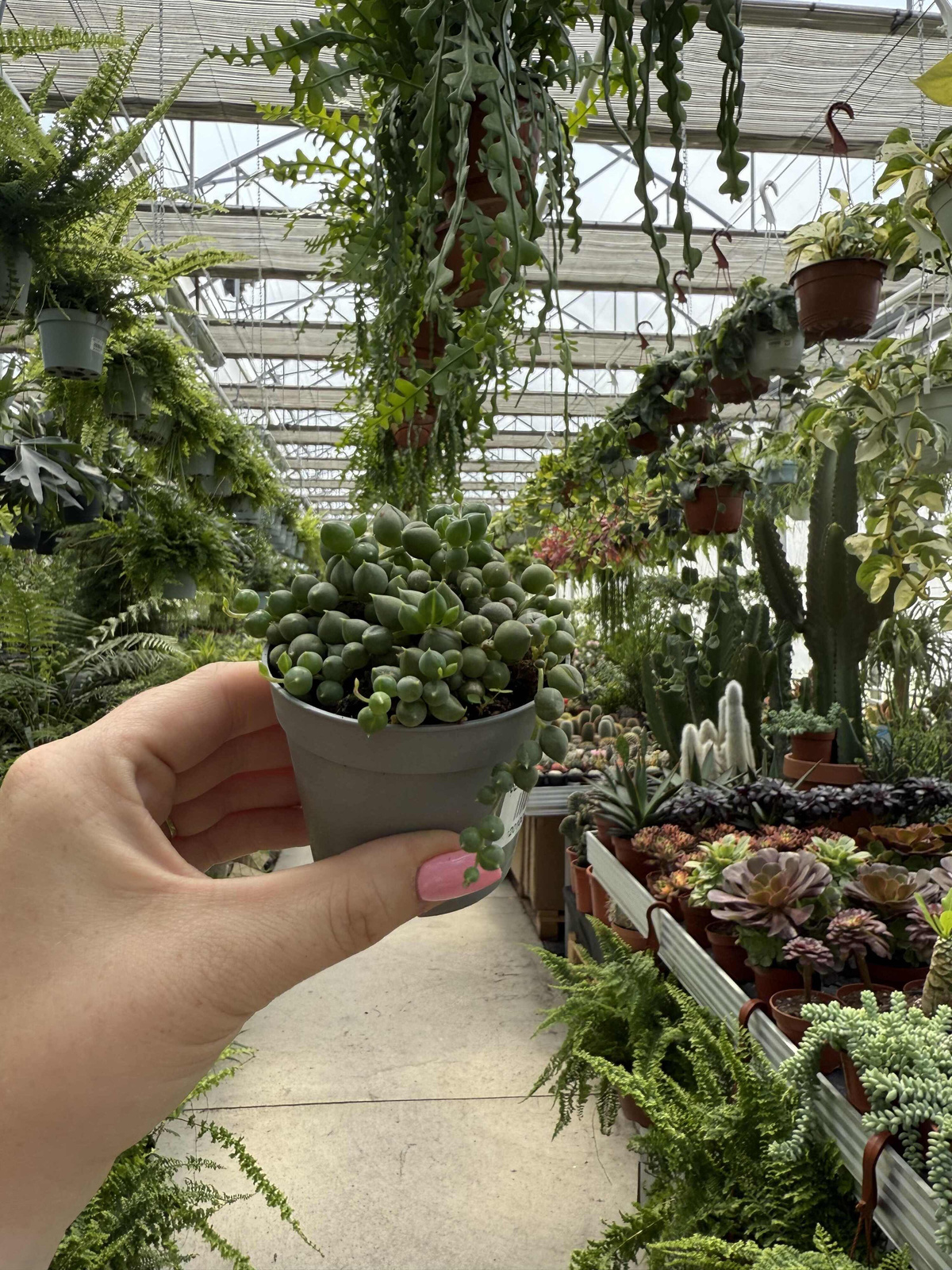 Senecio rowleyanus, znany jako sznur pereł, to niezwykle dekoracyjna, zwisająca roślina sukulentowa o kulistych, przypominających perły liściach. Idealna do uprawy w wiszących doniczkach, półkach czy kwietnikach. Pochodzi z południowej Afryki i jest ceniona za unikalny wygląd oraz niewielkie wymagania pielęgnacyjne.