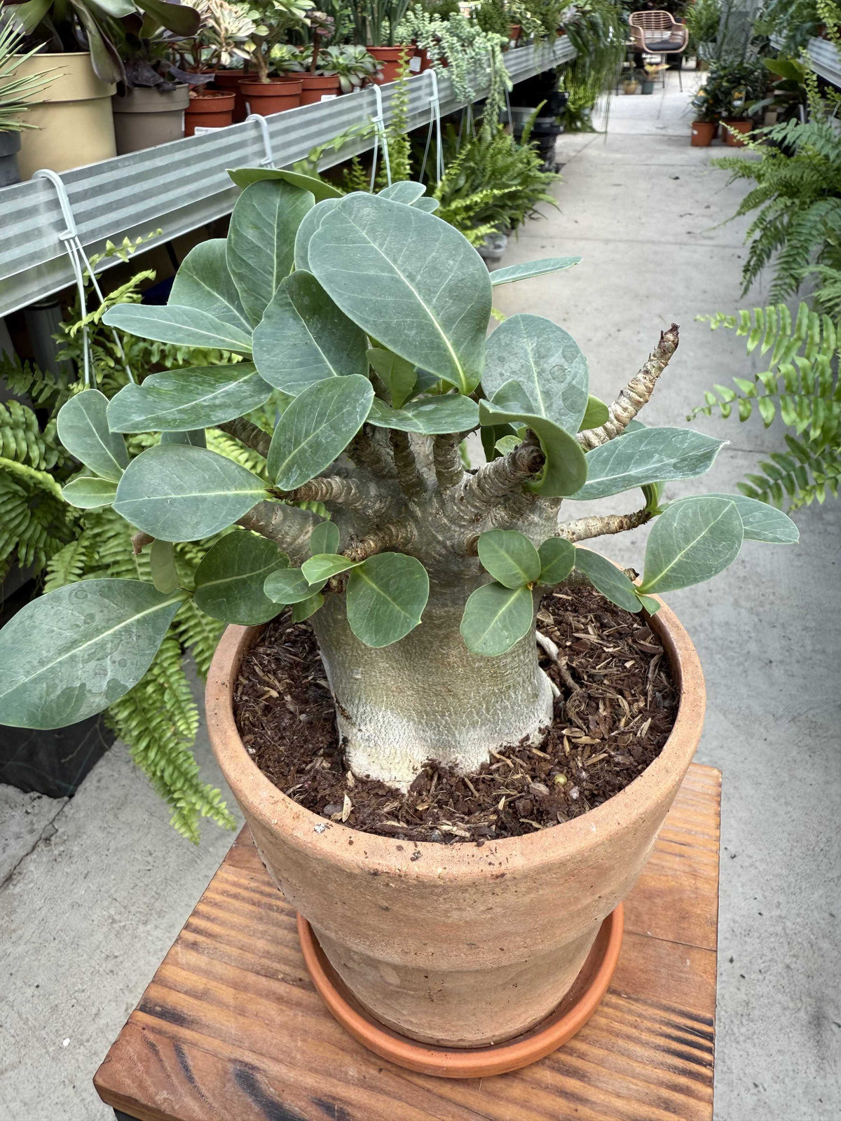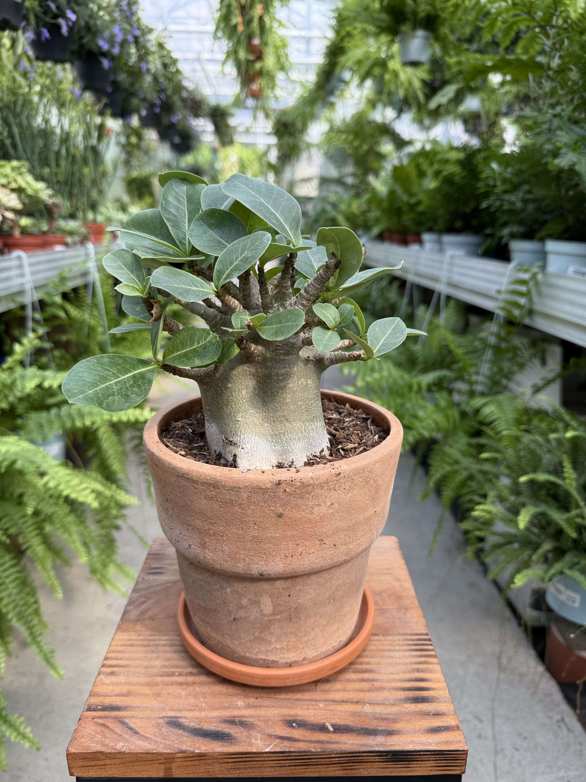Unikalny wygląd: Gruby pień i soczyste liście przypominają mały baobab, co nadaje roślinie egzotycznego charakteru.
