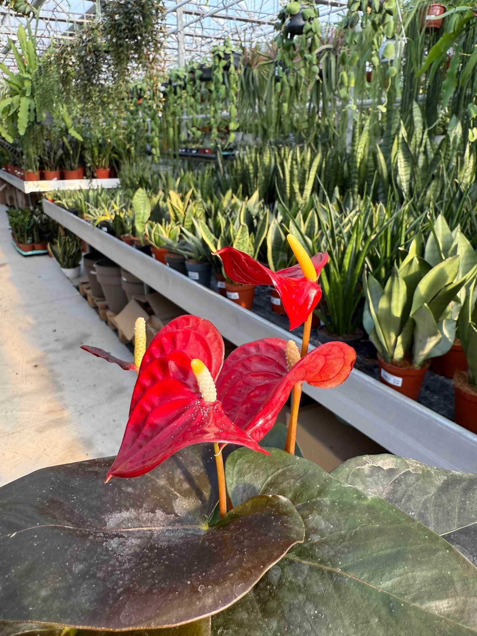 Anthurium Coral Champion to elegancka roślina doniczkowa, która zachwyca intensywnie czerwonymi kwiatami w kształcie serca oraz efektownymi zielono-bordowymi liśćmi. Kontrast liści i kwiatów tworzy niezwykle dekoracyjny, tropikalny akcent, który świetnie prezentuje się w nowoczesnych wnętrzach, biurach czy przestrzeniach komercyjnych.
