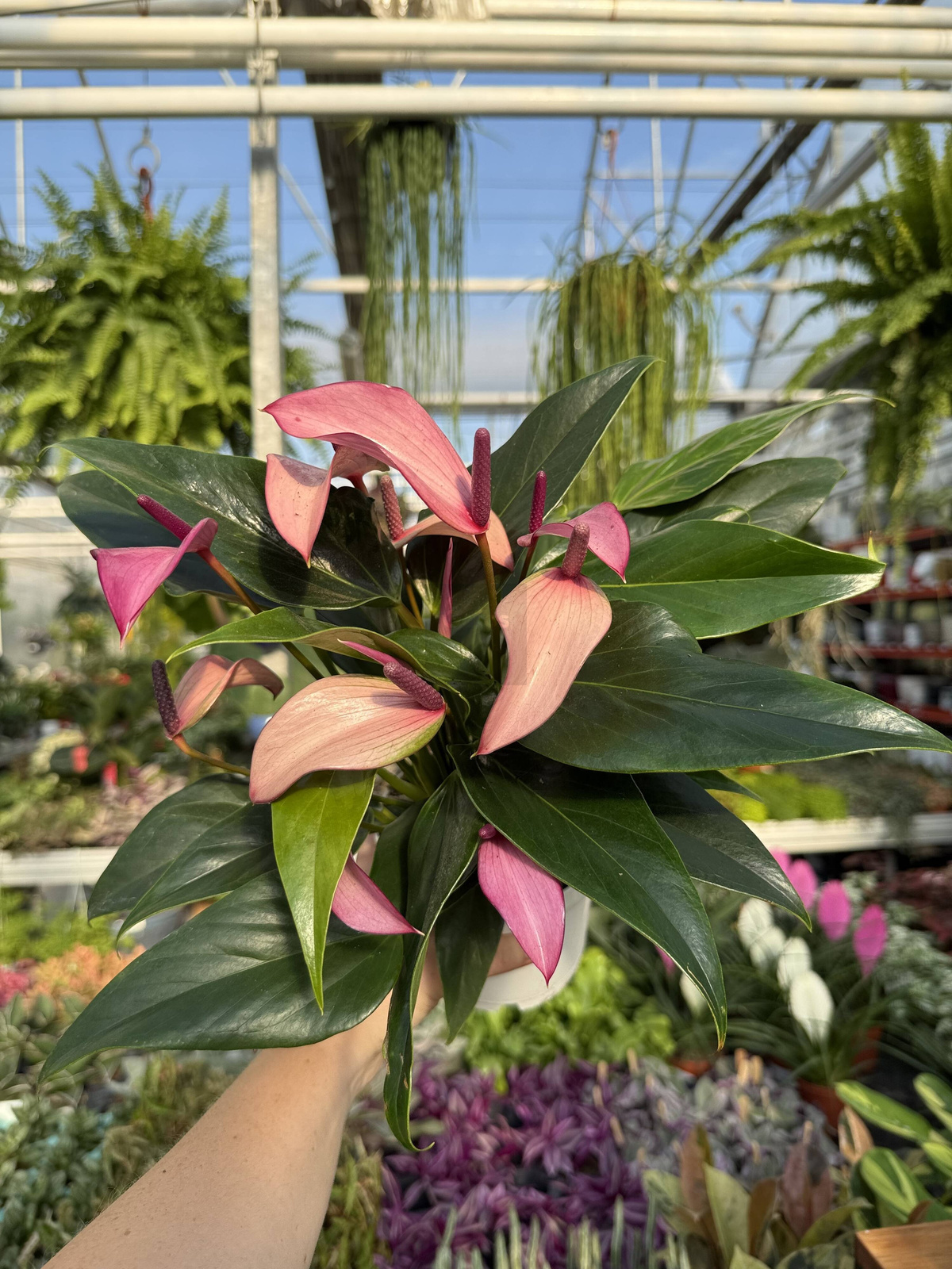 Anthurium Zizou to wyjątkowa odmiana anturium, która zachwyca nietypowym, fioletowo-różowym kolorem kwiatów. W połączeniu z błyszczącymi, ciemnozielonymi liśćmi tworzy elegancki, egzotyczny akcent w każdym wnętrzu.