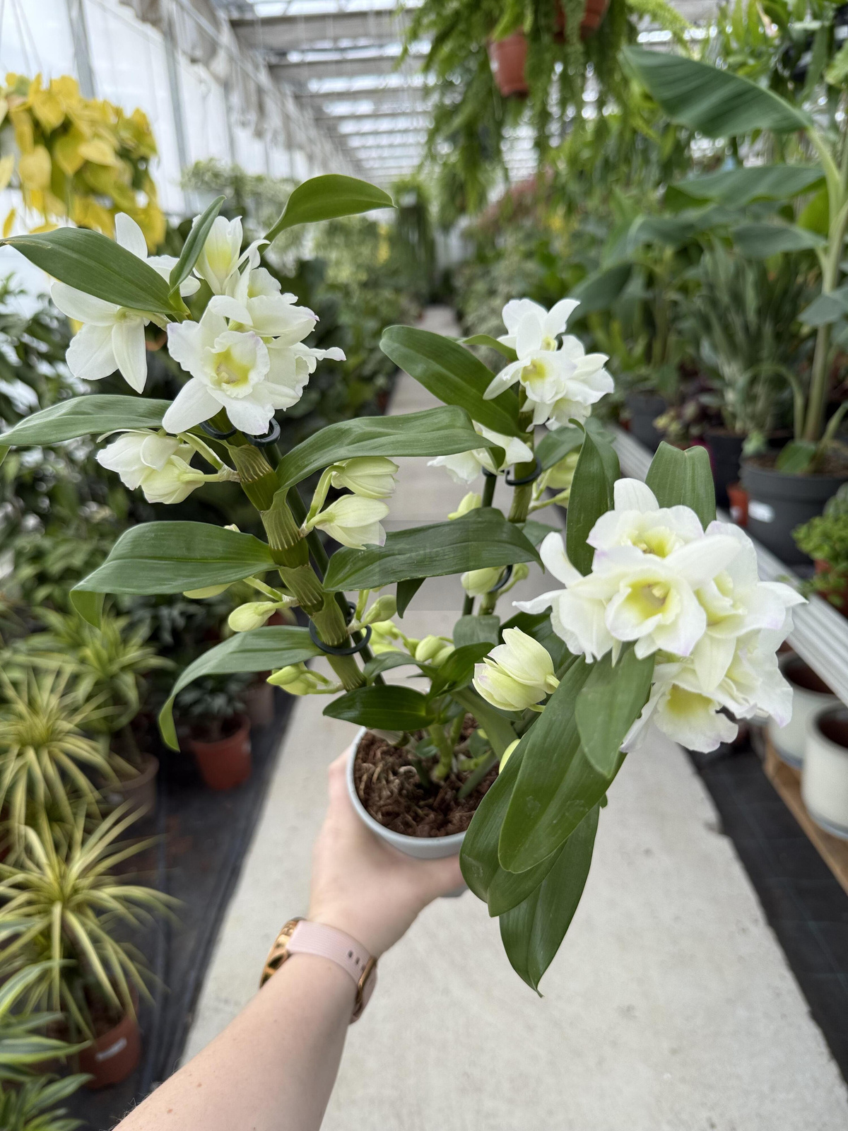 Dendrobium nobile 'Star Class Apollon’ to efektowna odmiana storczyka z grupy Dendrobium nobile, wyróżniająca się eleganckimi, białymi kwiatami z subtelnymi purpurowo-fioletowymi akcentami. Roślina ta charakteryzuje się zwartym pokrojem i obfitym kwitnieniem, co czyni ją doskonałym wyborem do dekoracji wnętrz oraz jako prezent na różne okazje.