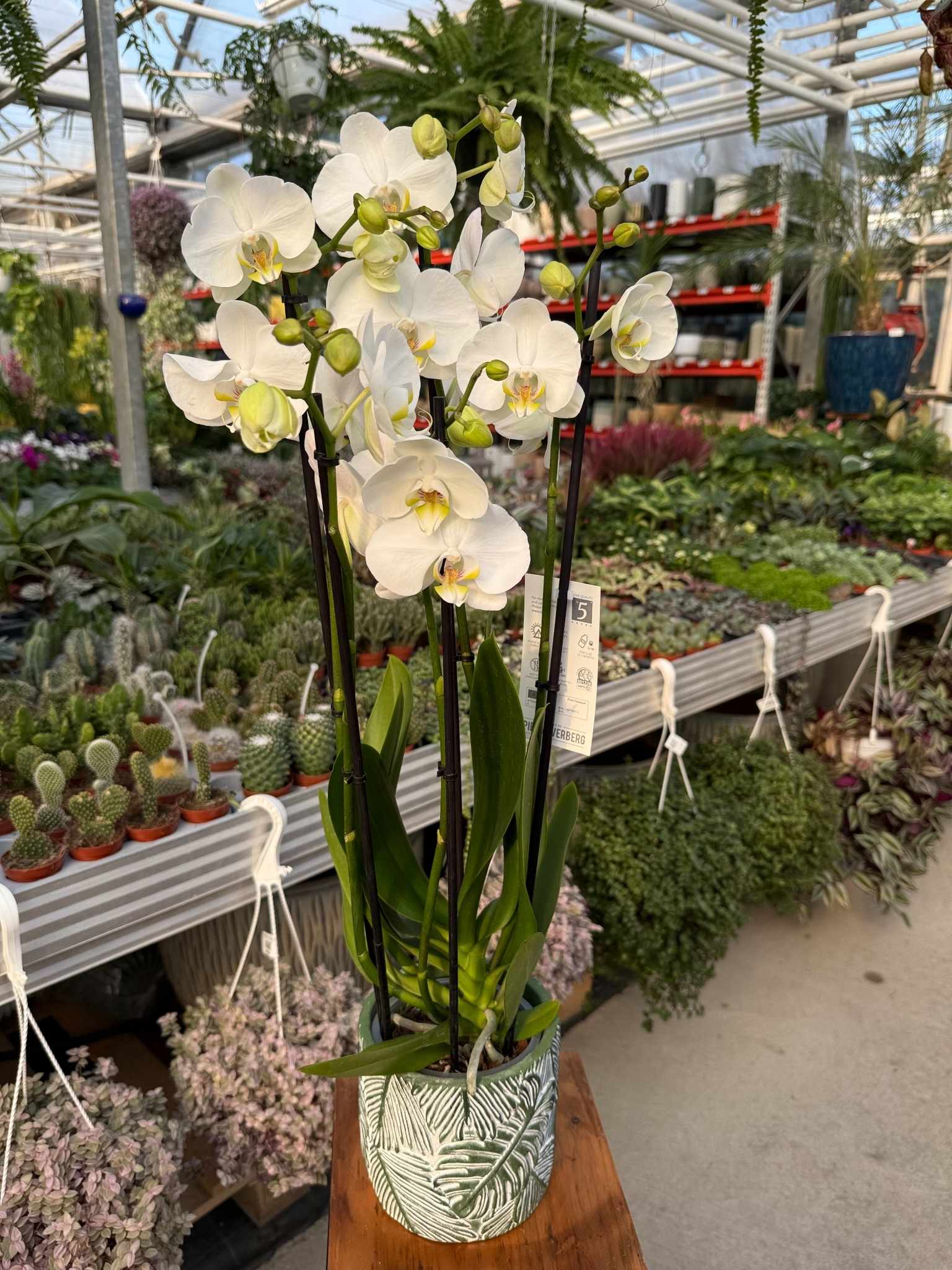 Wprowadź do swojego wnętrza nutę subtelnej elegancji dzięki Phalaenopsis Anthura Nottingham – wyjątkowemu storczykowi o śnieżnobiałych kwiatach i klasycznym uroku. Ten gatunek storczyka to synonim ponadczasowego piękna i doskonałości wśród roślin doniczkowych.