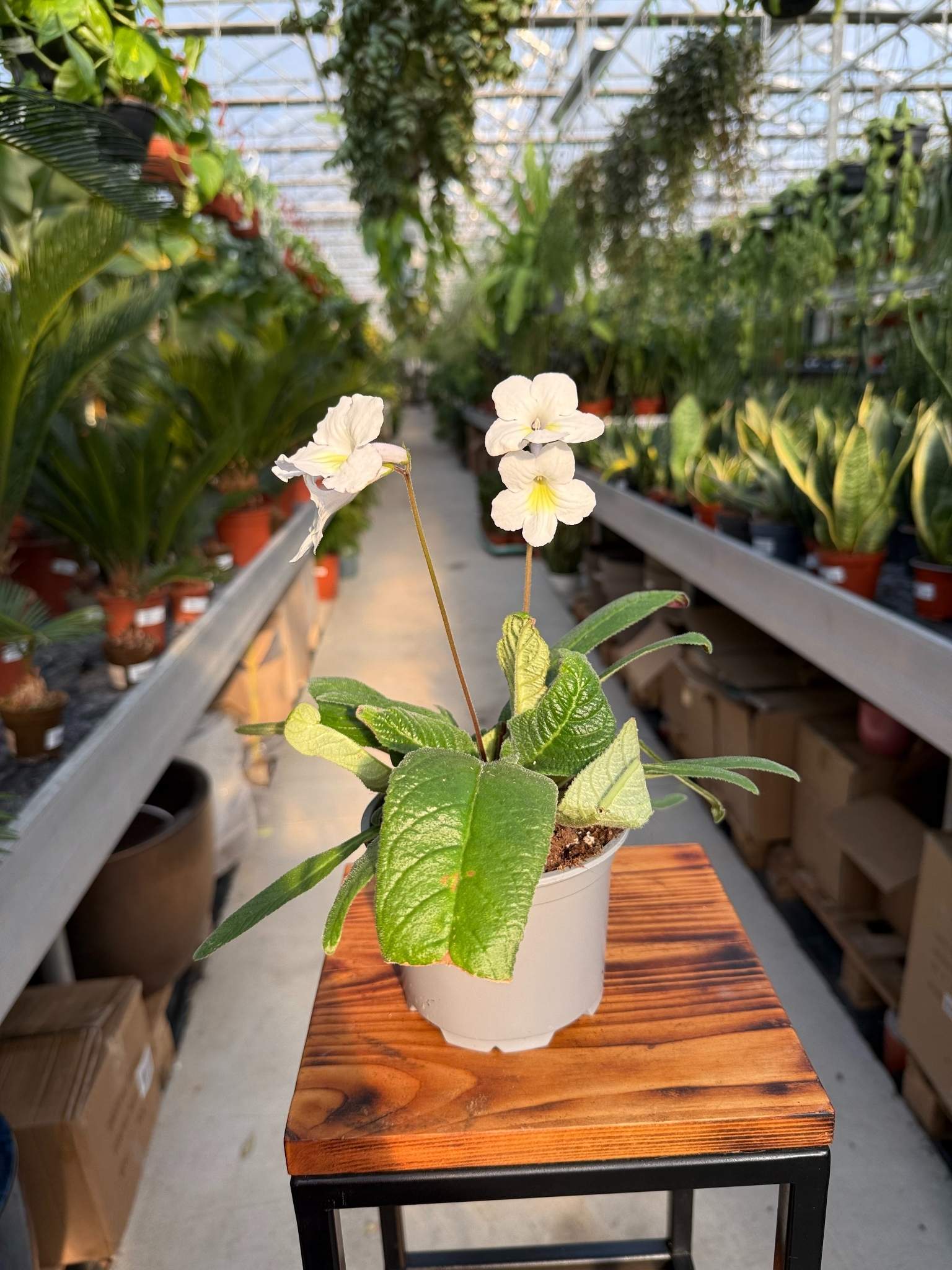 Skrętnik (Streptocarpus) biały z żółtym oczkiem to wyjątkowo delikatna i elegancka roślina doniczkowa. Śnieżnobiałe, aksamitne płatki z kontrastowym, żółtym środkiem nadają kwiatom lekkości i świeżości, dzięki czemu roślina doskonale rozjaśnia każde wnętrze.