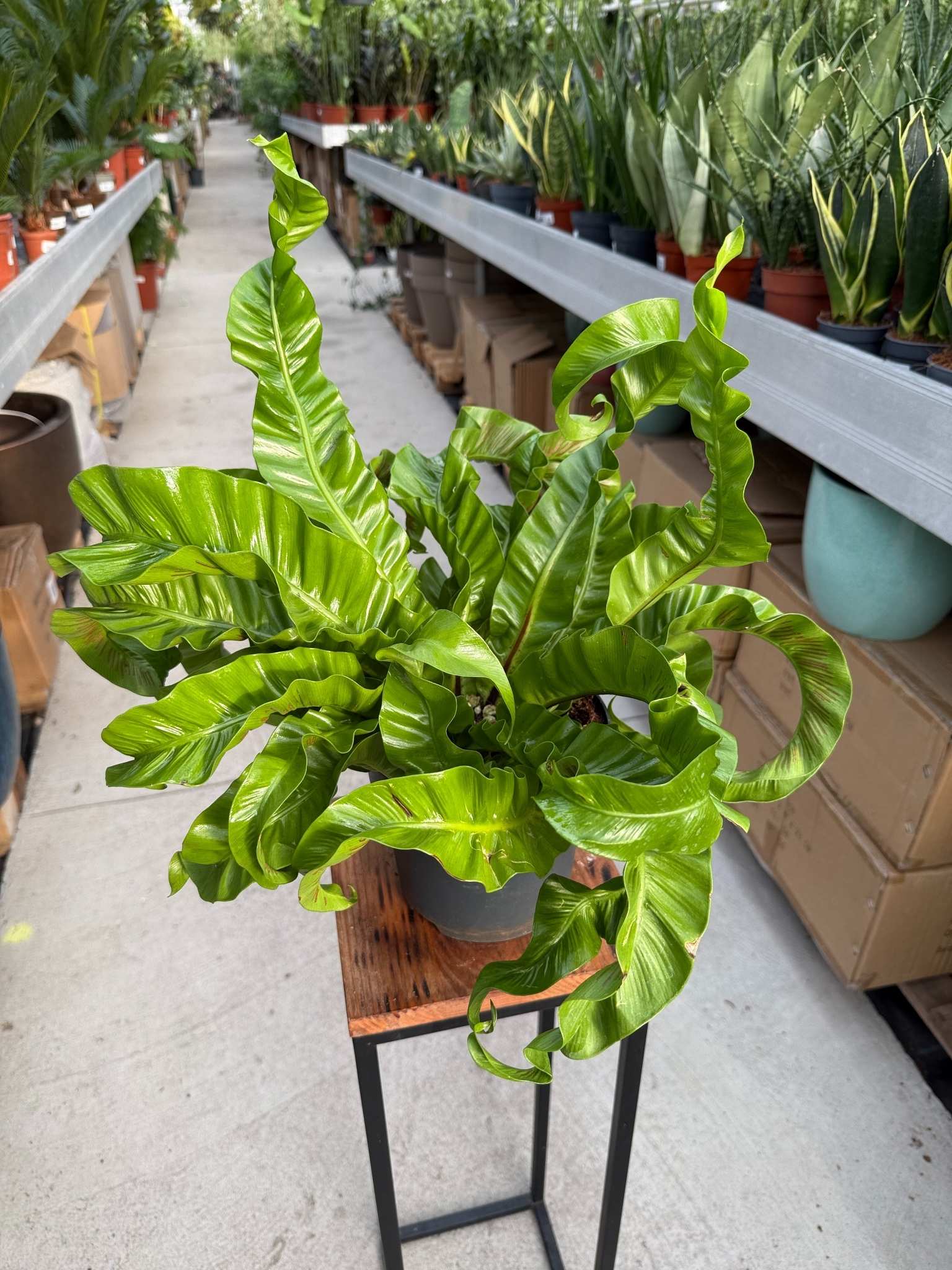 W rozmiarze P17 jest to już duży, dojrzały okaz, którego skręcone liście prezentują się wyjątkowo okazale. Ta paproć jest prawdziwym „statement piece” – przyciąga uwagę i staje się centralnym punktem każdej aranżacji. Wymaga stabilnych warunków, typowych dla paproci tropikalnych: wysokiej wilgotności, ciepła i rozproszonego światła.