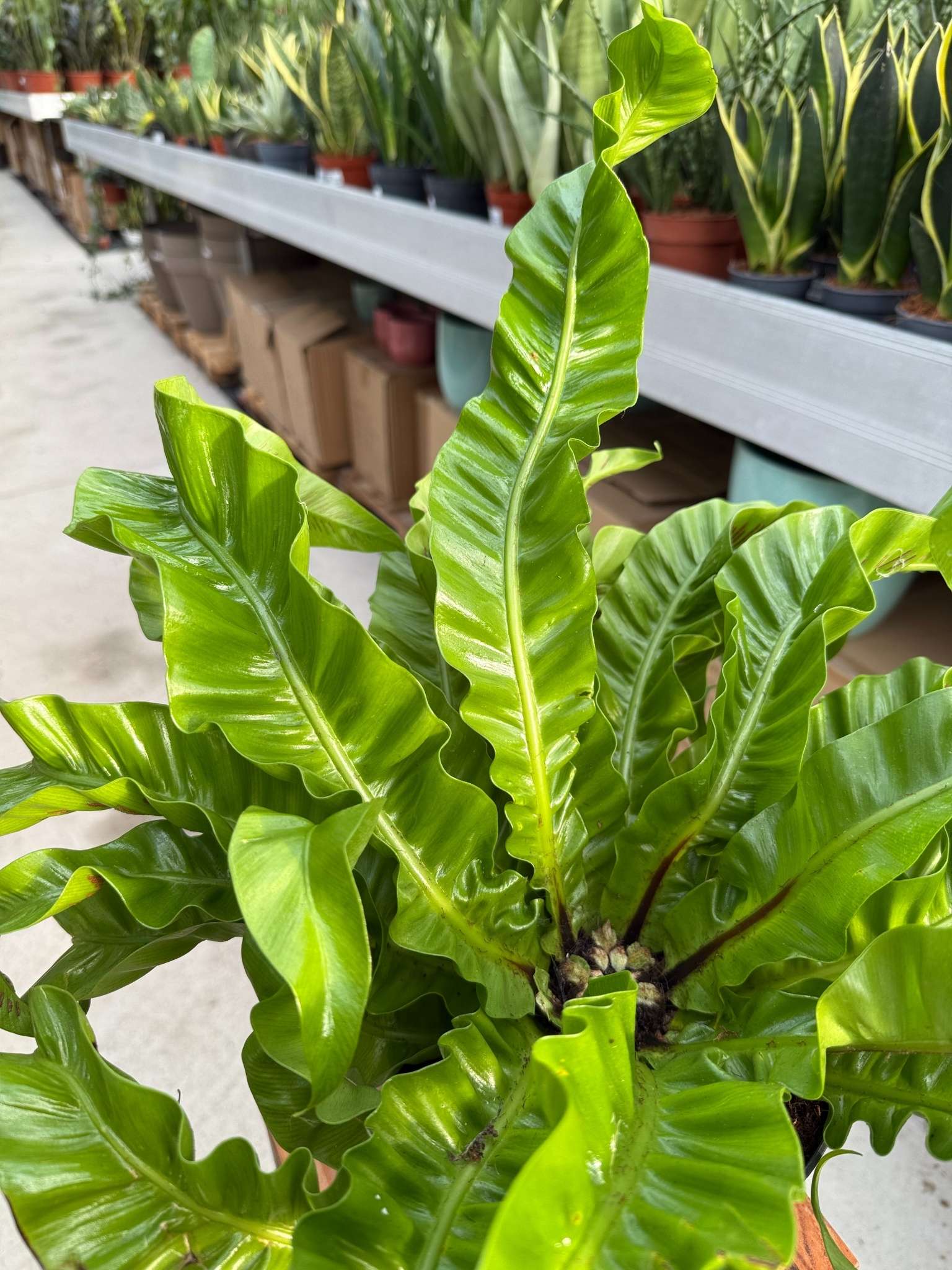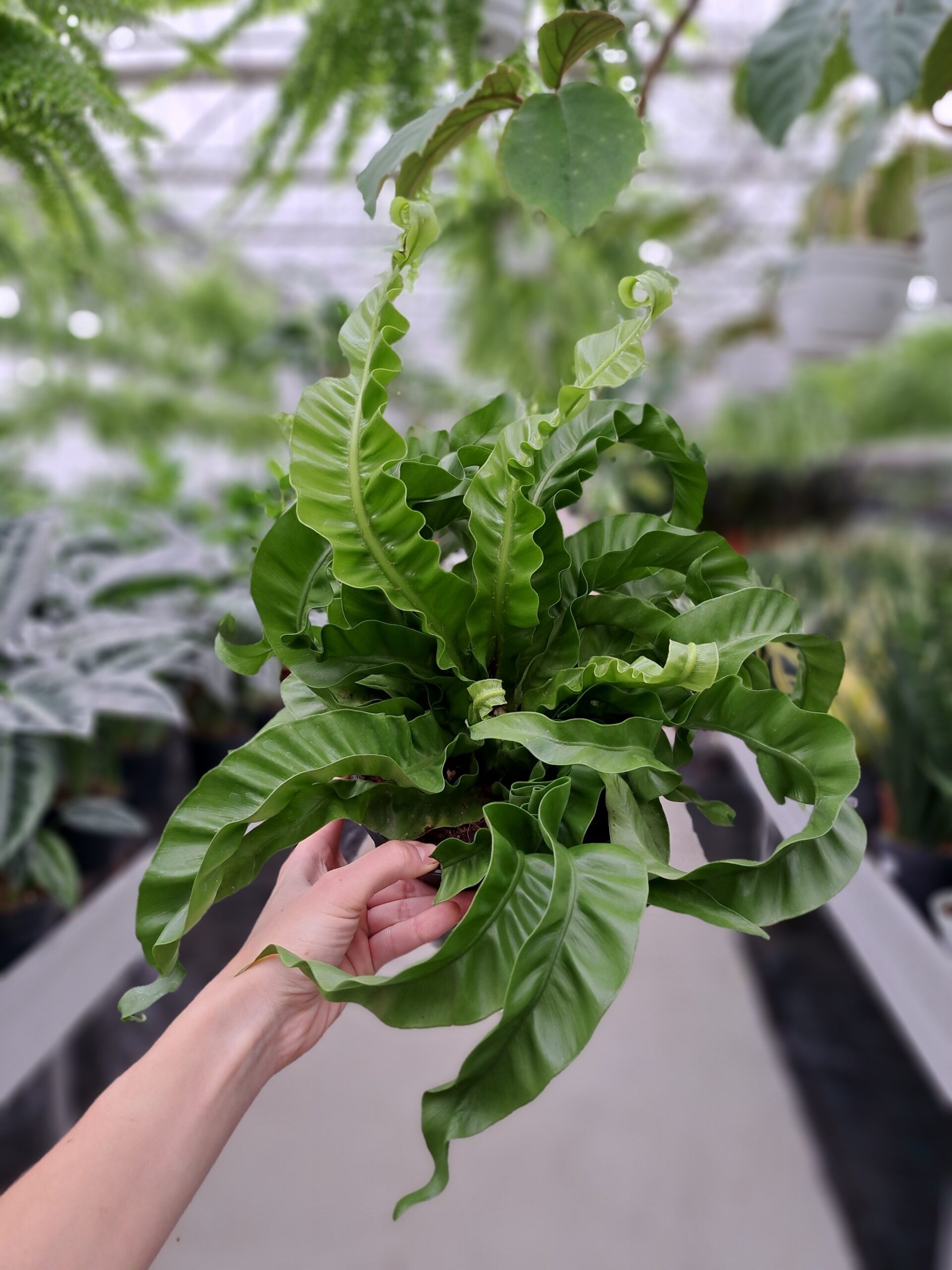 Paproć Asplenium Hurricane to spektakularna paproć o dużych, skręconych, jasnozielonych liściach przypominających wir powietrza. Idealna do nowoczesnych, wilgotnych wnętrz, dodaje przestrzeni dynamicznego, artystycznego i tropikalnego charakteru.