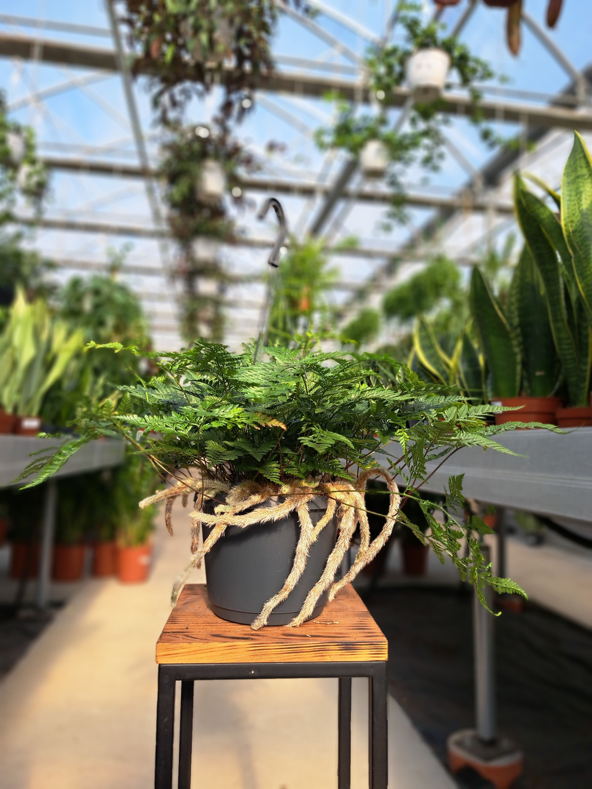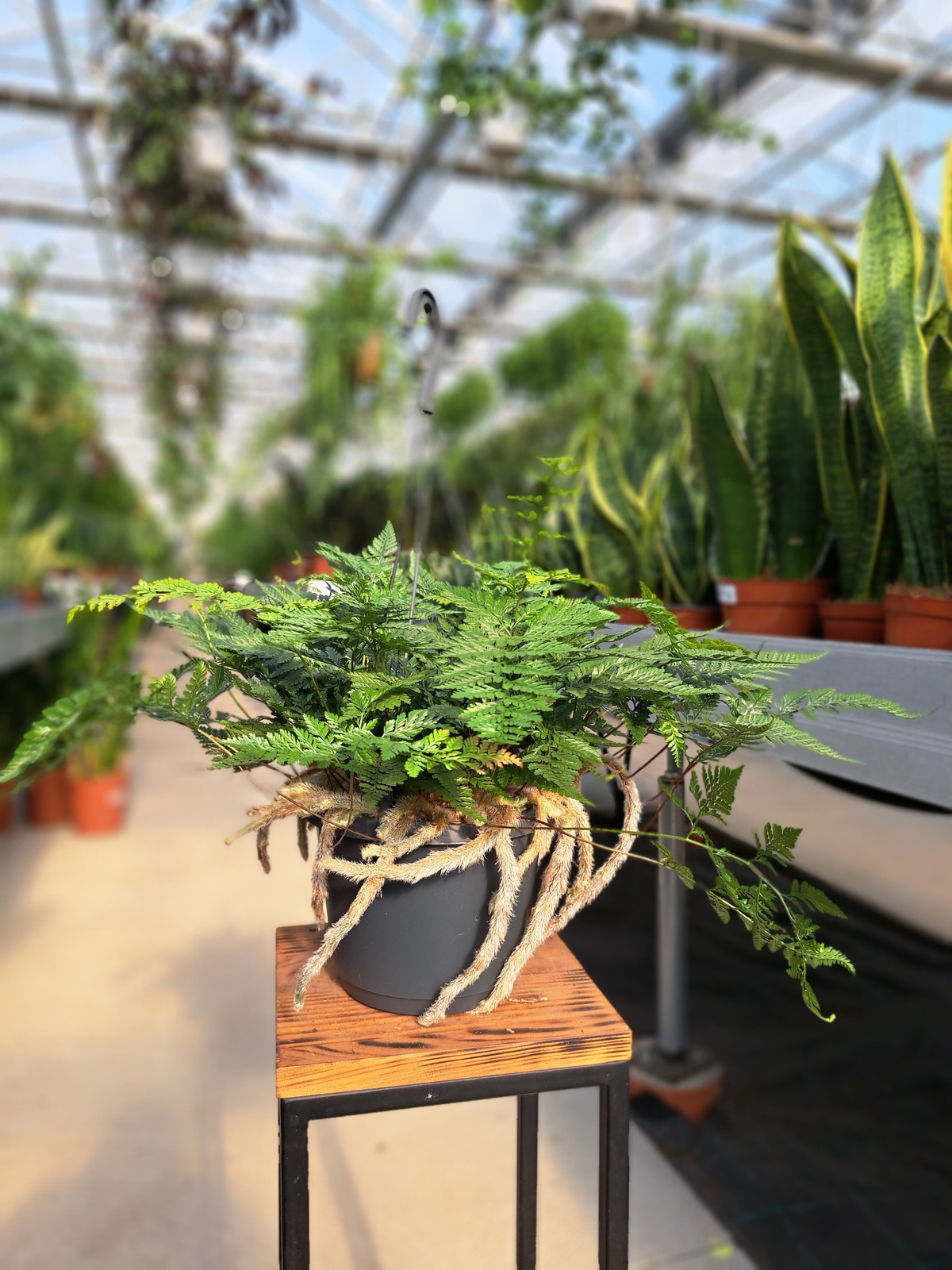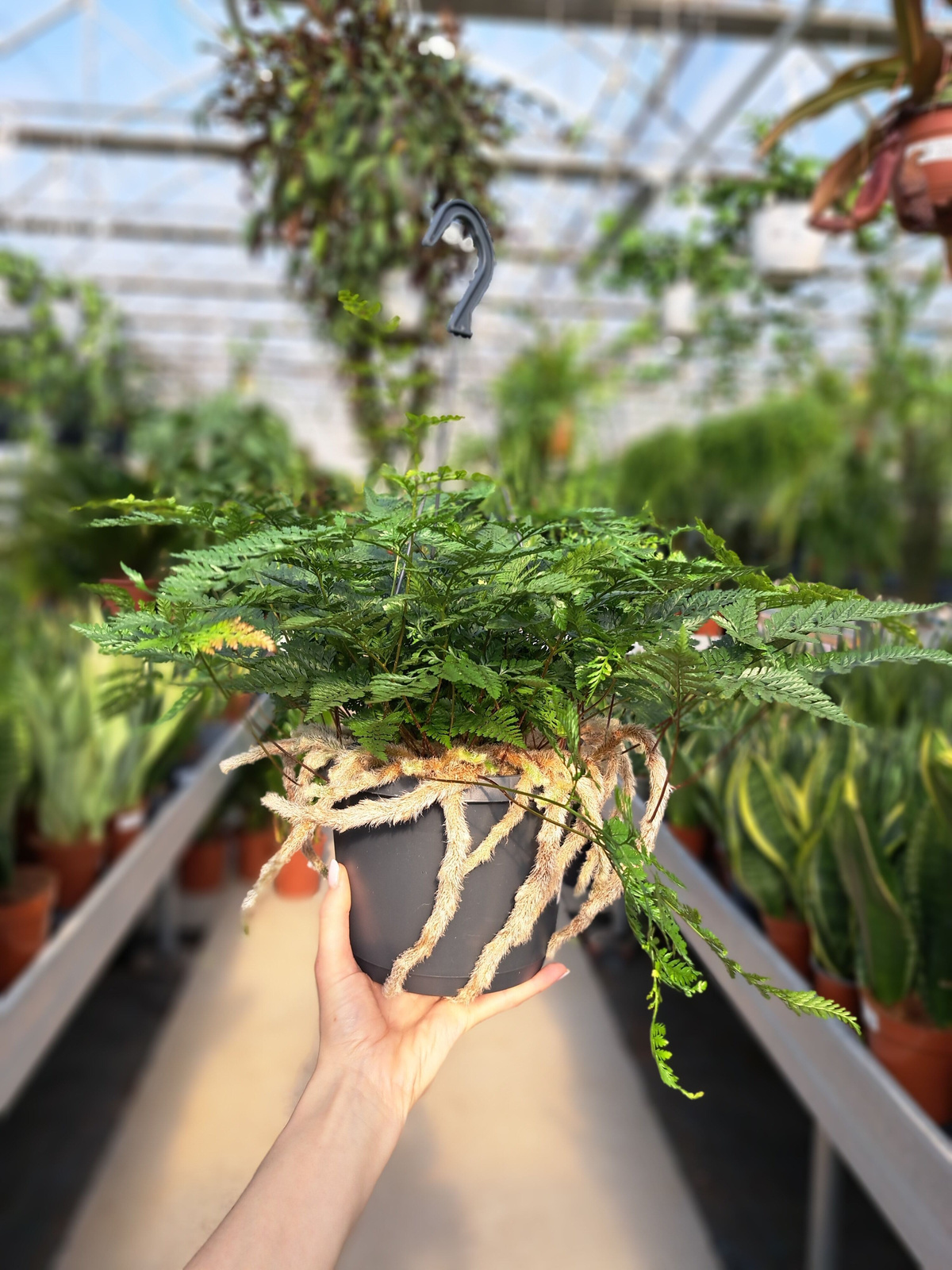 Paproć Davallia, znana również jako „noga pająka”, to niezwykle oryginalna roślina doniczkowa, która wyróżnia się charakterystycznymi, puszystymi kłączami wychodzącymi poza doniczkę. W połączeniu z delikatnymi, ażurowymi liśćmi tworzy egzotyczny i bardzo dekoracyjny efekt, idealny do nowoczesnych oraz boho wnętrz.