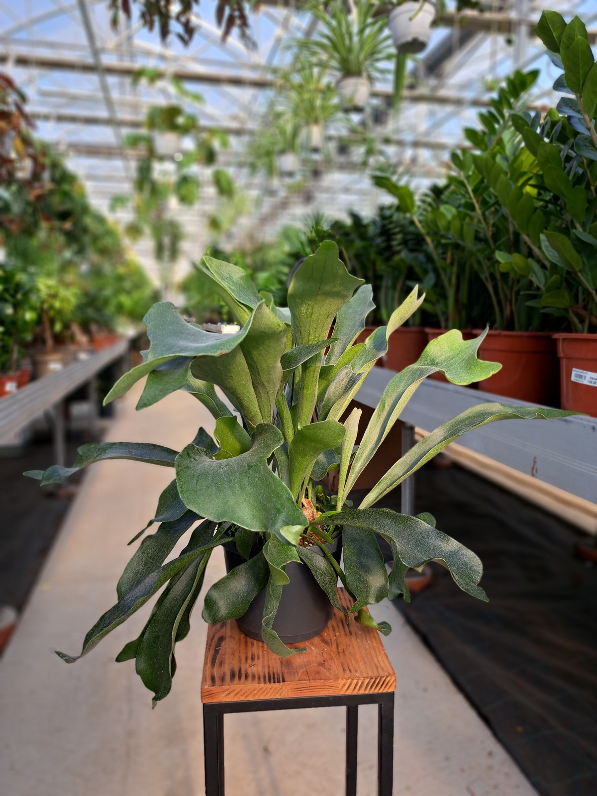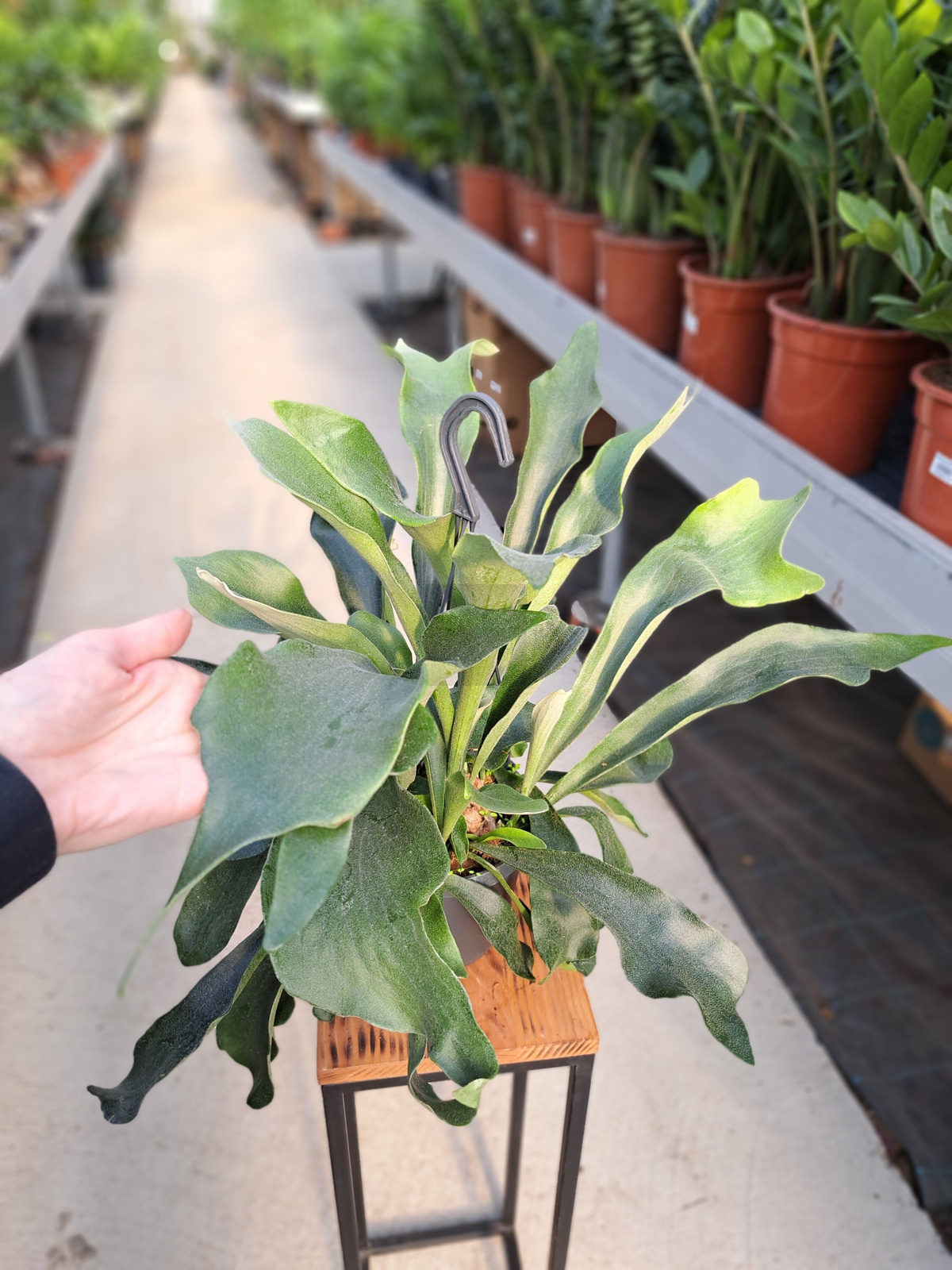 Platycerium najpiękniej prezentuje się w wiszących donicach, na panelach, deskach lub w makramach. Jest prawdziwą ozdobą ściany i przyciąga wzrok swoją egzotyczną, rzeźbiarską formą. Doskonały wybór dla miłośników oryginalnych i designerskich roślin.