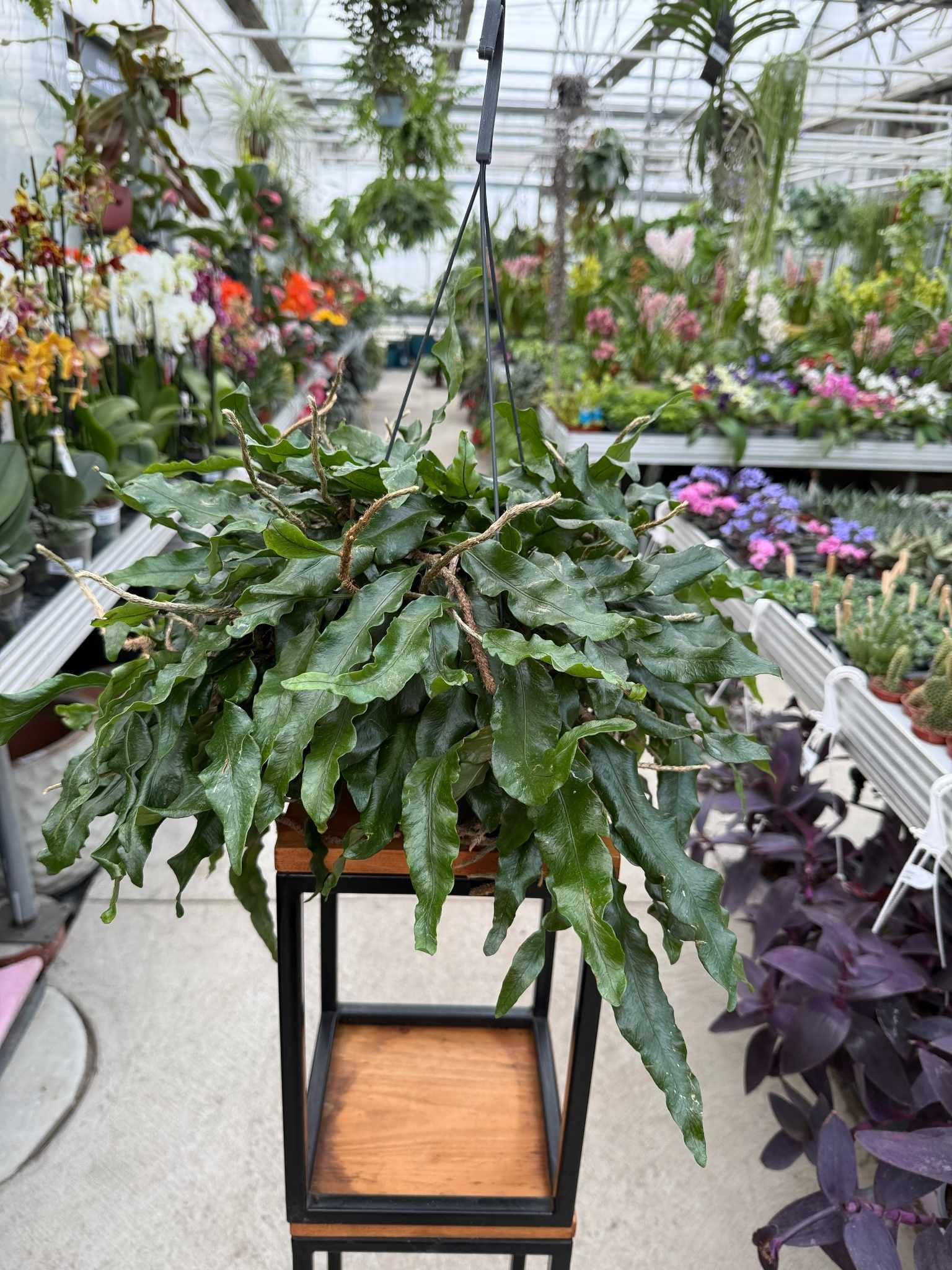 Paproć Microgramma najlepiej rośnie w stabilnych warunkach. Przy regularnym podlewaniu i odpowiednim świetle tworzy gęstą, zwisającą formę, która wprowadza do wnętrza wyraźną, naturalną zieleń.