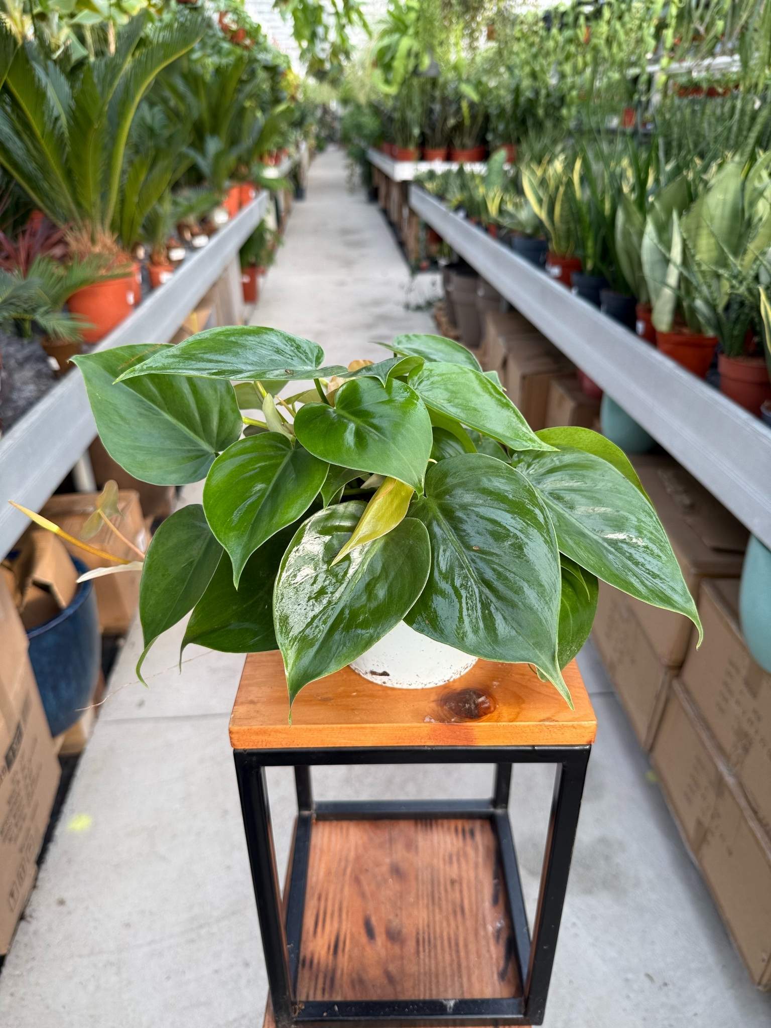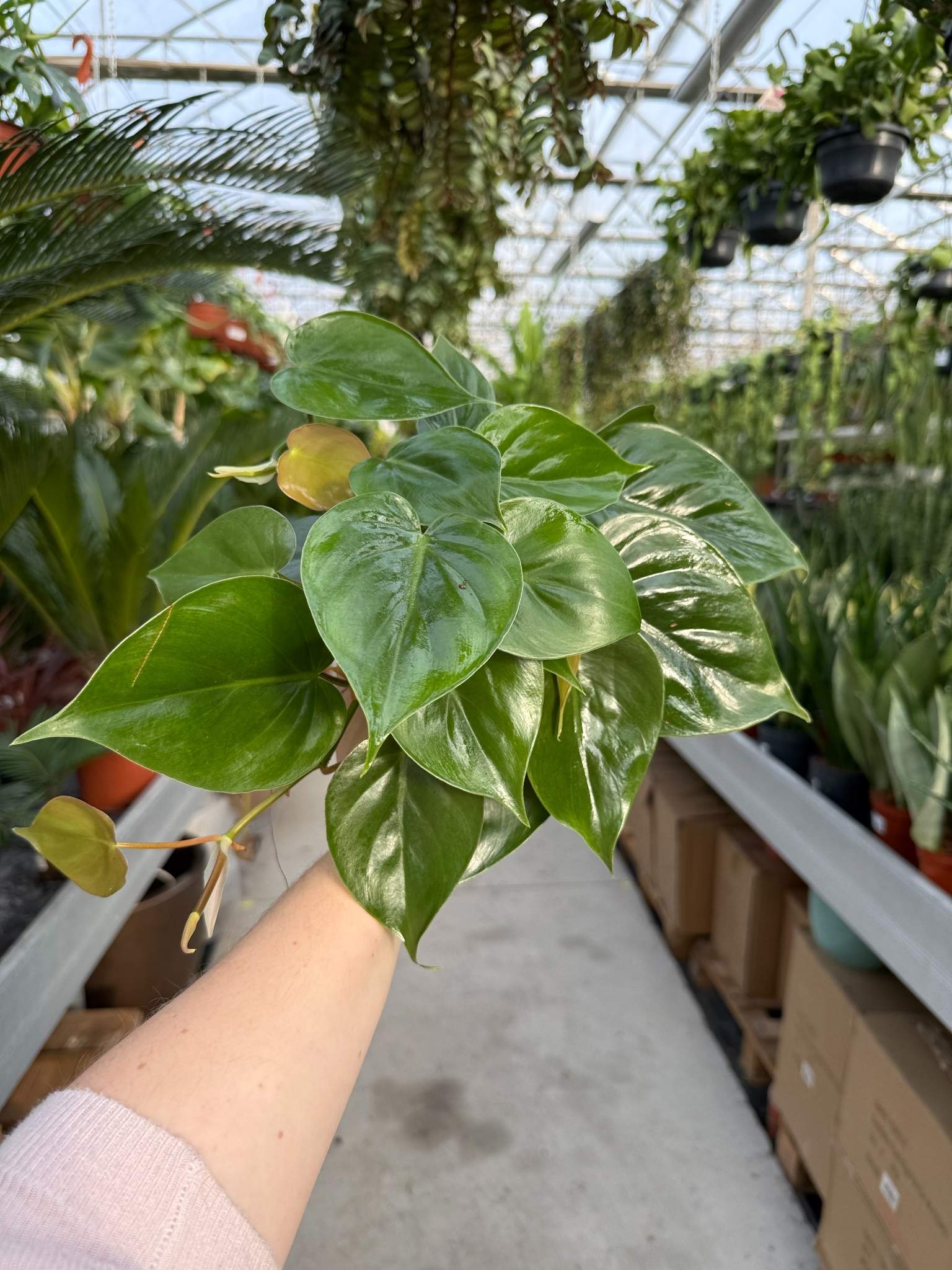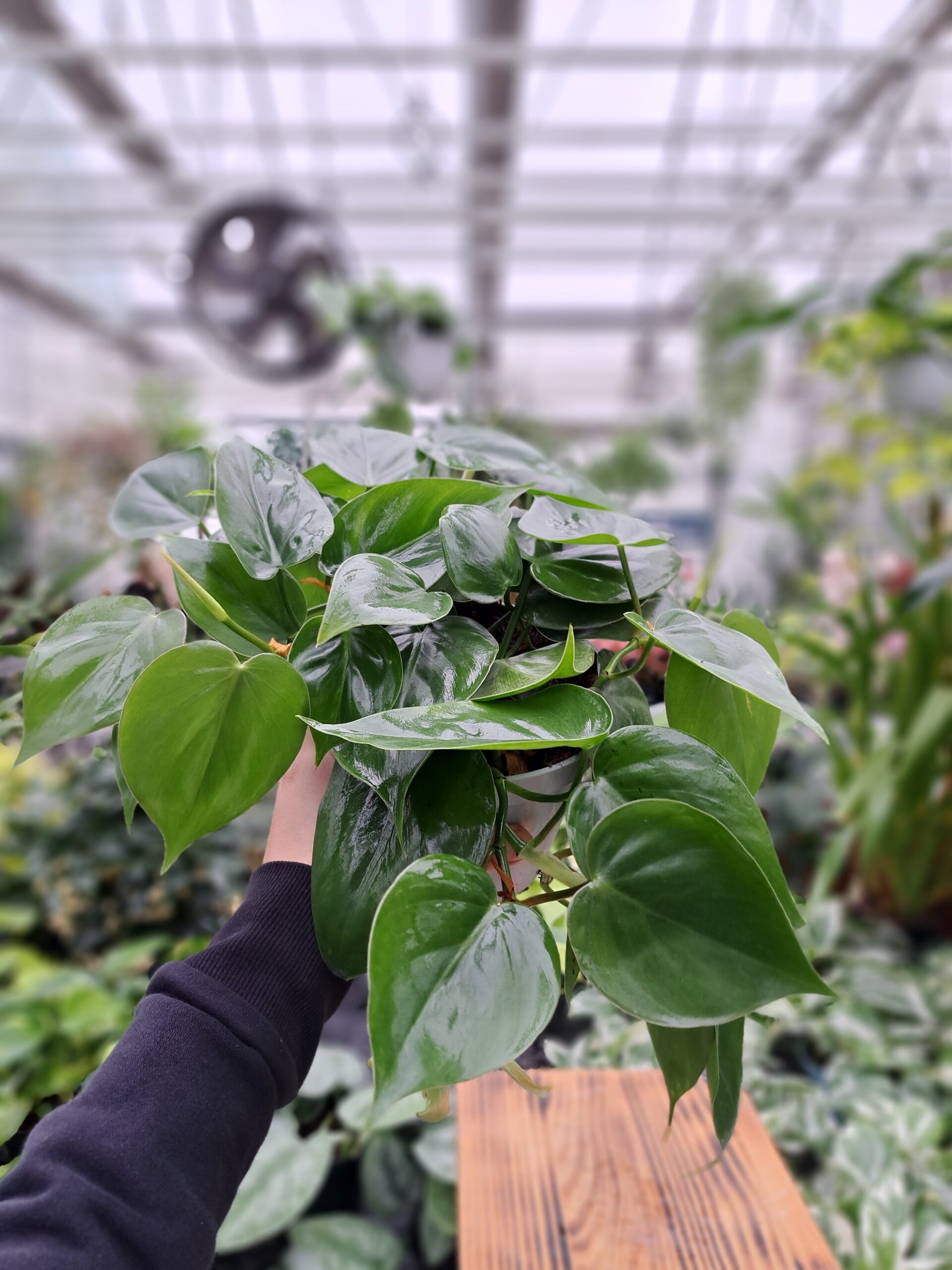 Philodendron Scandens to duży, bujny okaz jednego z najpopularniejszych i najbardziej wytrzymałych pnących filodendronów, sprzedawany w 13-centymetrowej doniczce produkcyjnej. Charakteryzuje się długimi, elastycznymi pędami gęsto pokrytymi klasycznymi, błyszczącymi, sercowatymi liśćmi w soczystym, głębokim odcieniu zieleni.