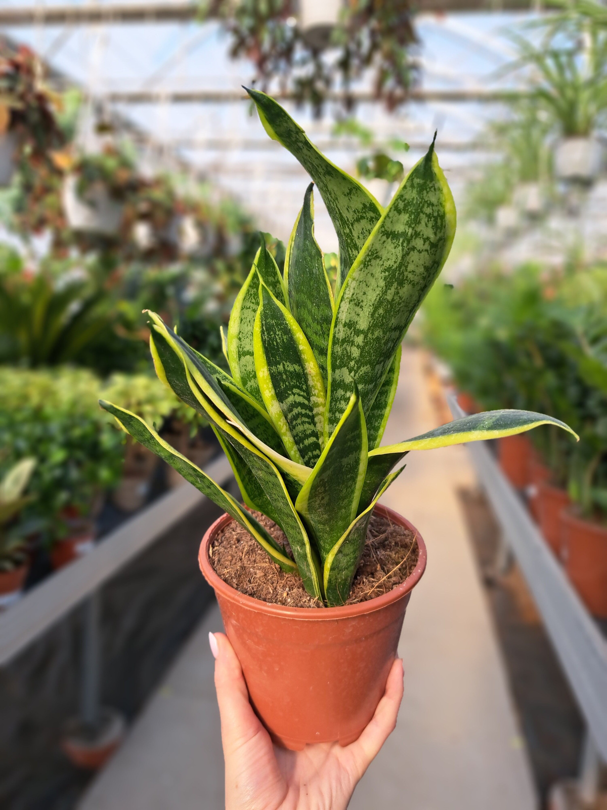 • Temperatura: Optymalna temperatura to 18–24°C. Sansewieria dobrze rośnie w typowych warunkach domowych, jednak należy unikać niskich temperatur poniżej 10°C.