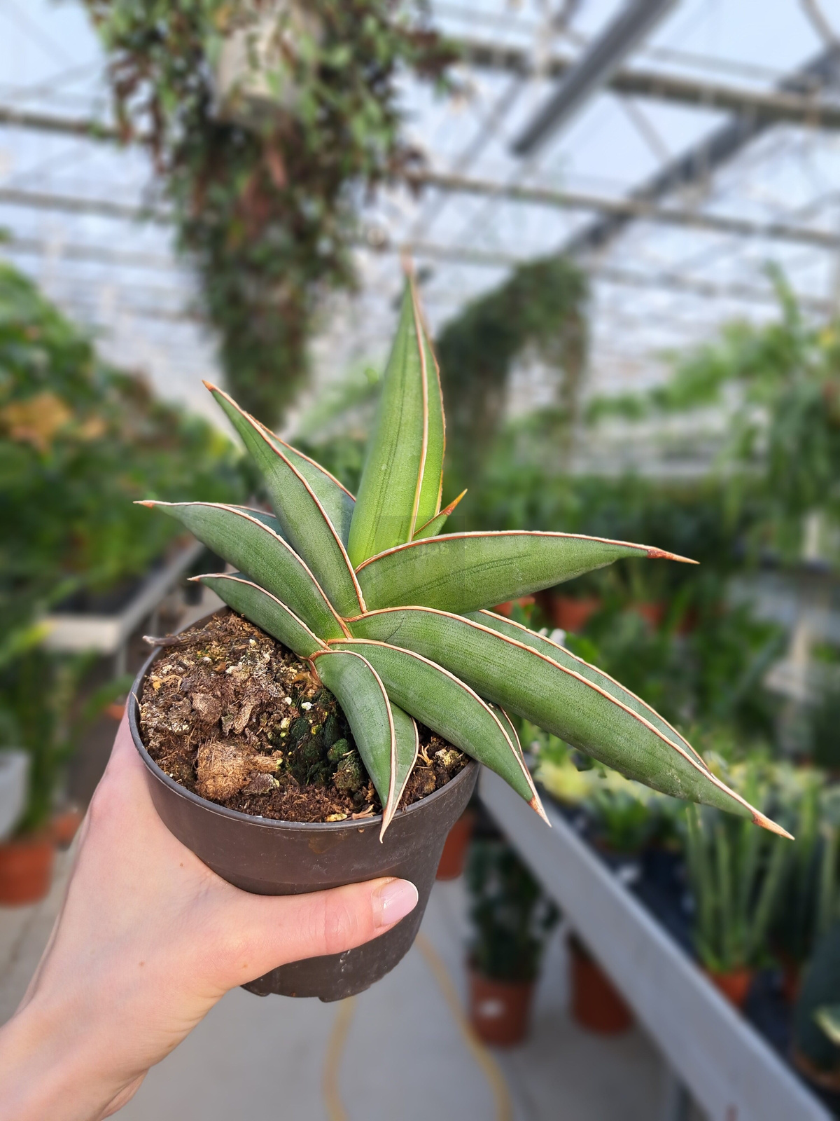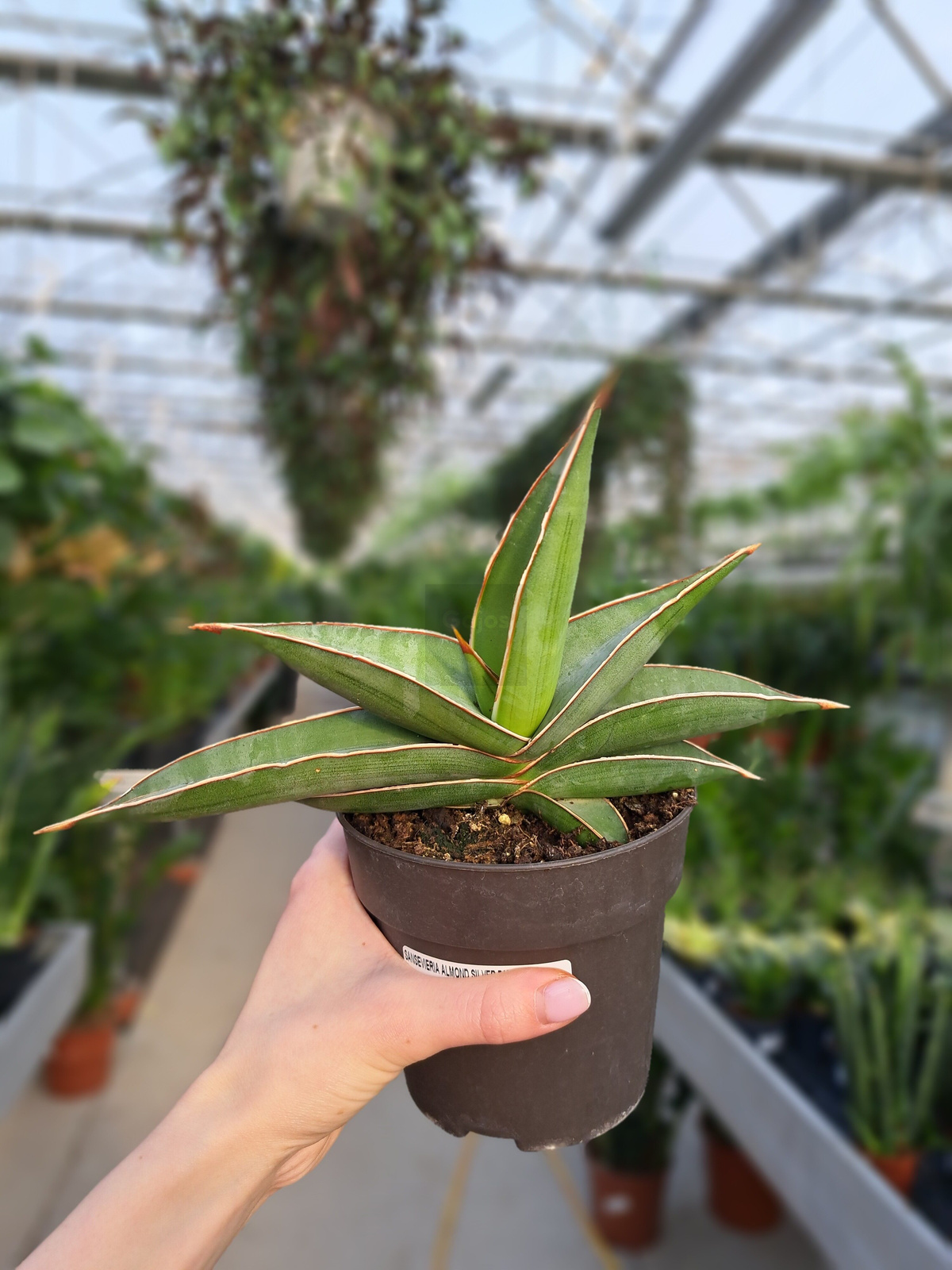 Sansevieria 'Almond Silver’ to roślina charakteryzująca sięniebywałą trwałością. Jej smukłe liście o charakterystycznym srebrzystozielonym odcieniach i charakterystyczne cechy przyciągają i dodają wnętrzom nowoczesnego uroku.